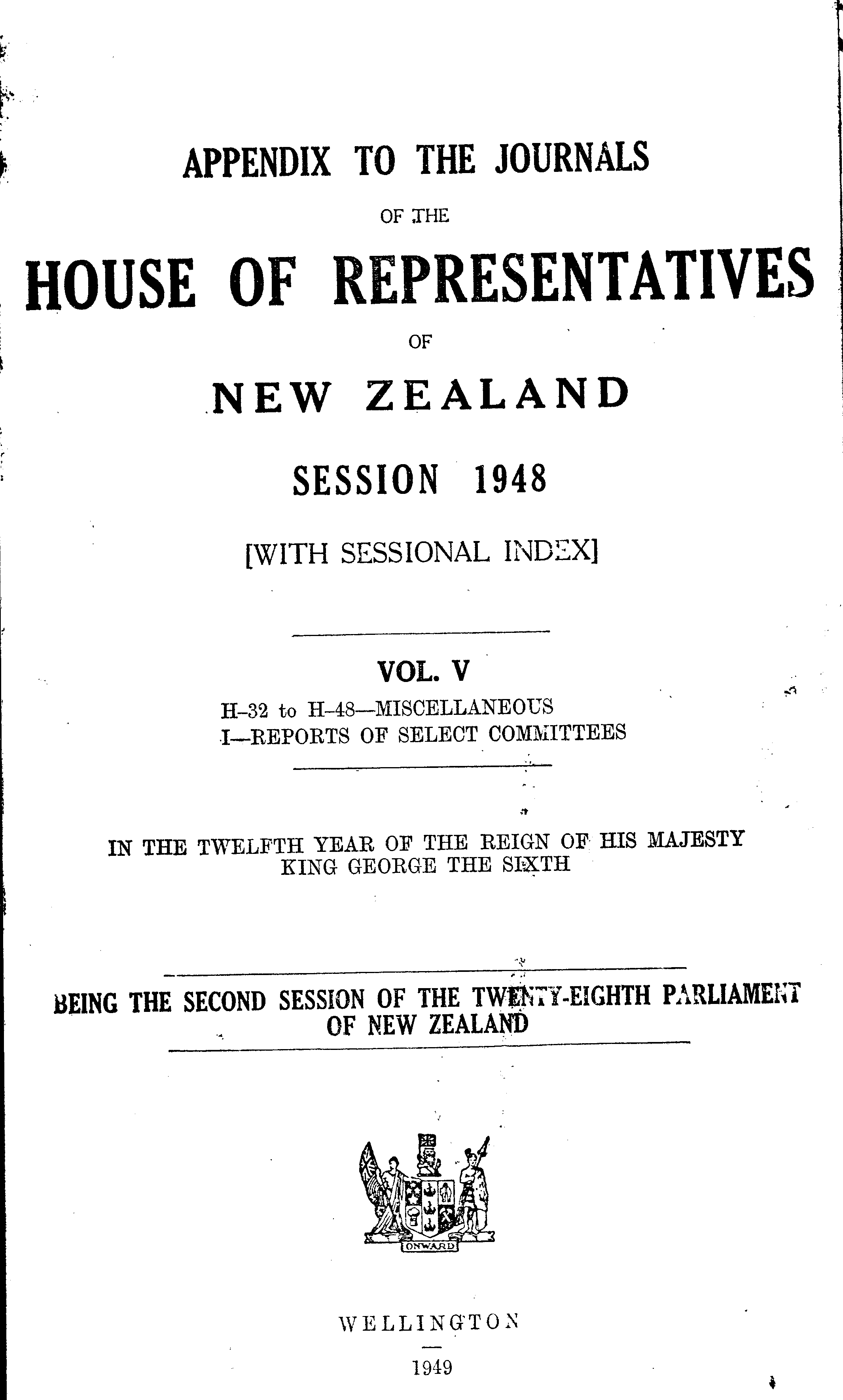 APPENDIX TO THE JOURNALS OF THE HOUSE OF REPRESENTATIVES OF NEW ZEALAND SESSION 1948 [WITH SESSIONAL INDEX]