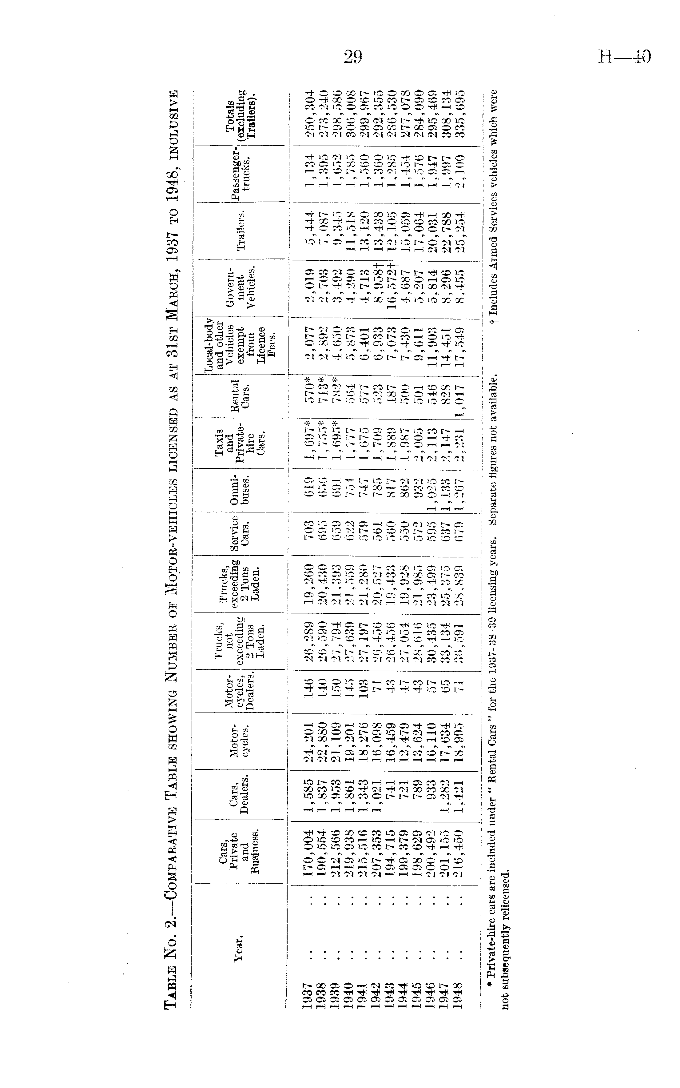 Table No. 2.—Comparative Table showing Number of Motor-vehicles licensed as at 31st March, 1937 to 1948, inclusive