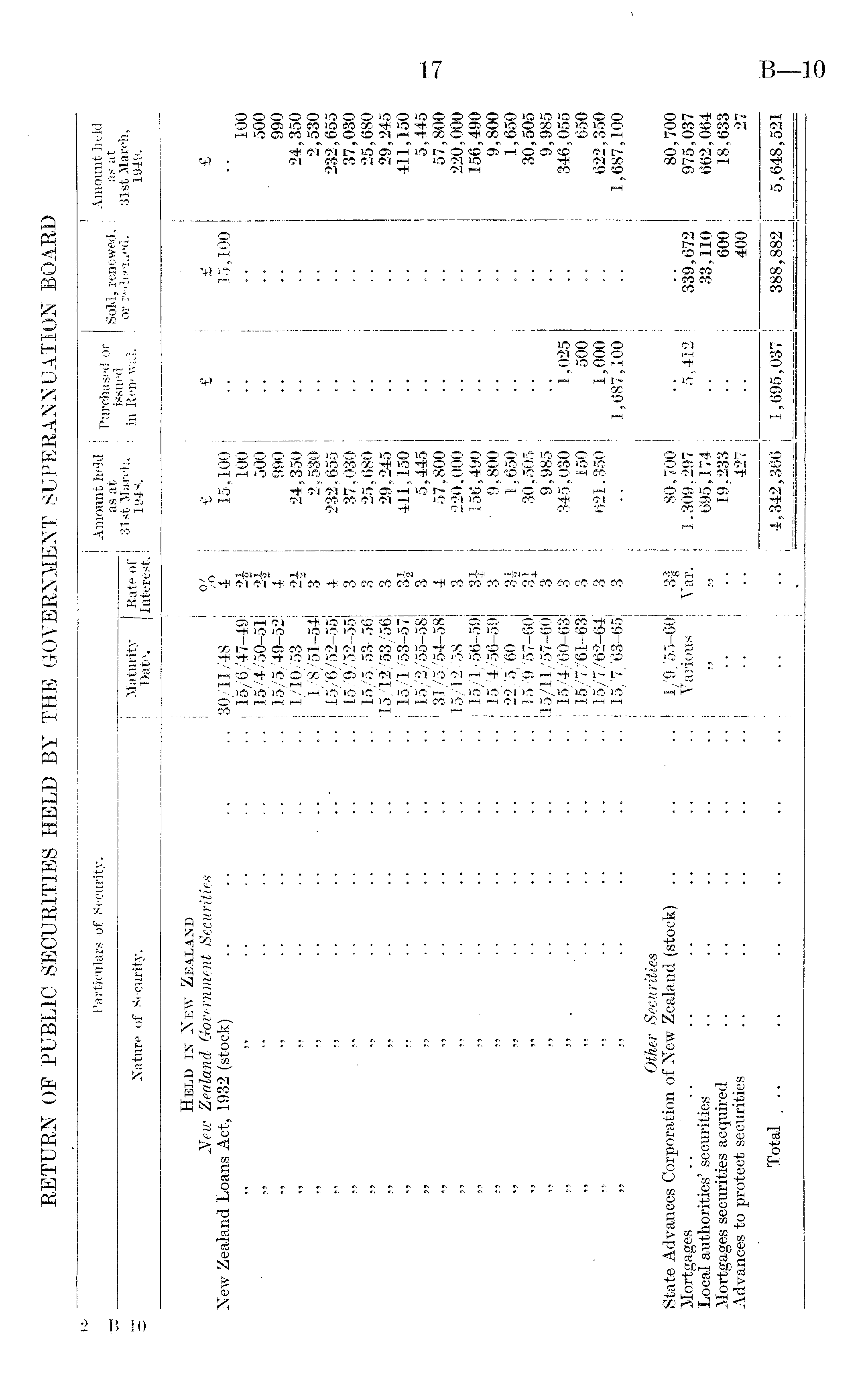 RETURN OF PUBLIC SECURITIES HELD BY THE GOVERNMENT SUPERANNUATION BOARD