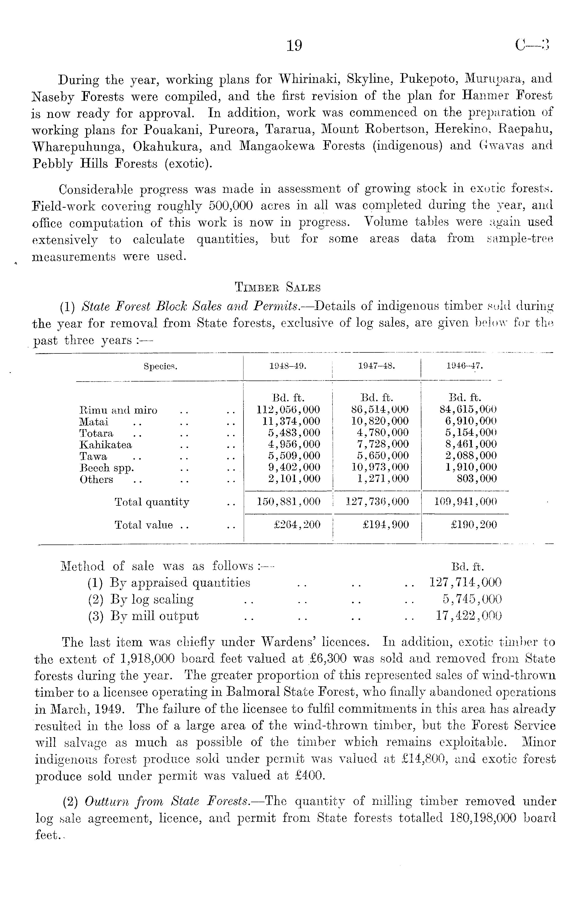 Species. 1948-49. 1947-48. 1946-47. Rimu and miro Matai Totara Kahikatea Tawa Beech spp. Others Bd. ft. 112,056,000 11,374,000 5,483,000 4,956,000 5,509,000 9,402,000 2,101,000 Bd. ft. 86,514,000 10,820,000 4,780,000 7,728,000 5,650,000 10,'973,000 1,271,000 Bd. ft. 84,615,000 6,910,000 5,154,000 8,461,000 2,088,000 1,910,000 803,000 Total quantity 150,881,000 127,736,000 109,941,000 Total value £264,200 £194,900 £190,200.