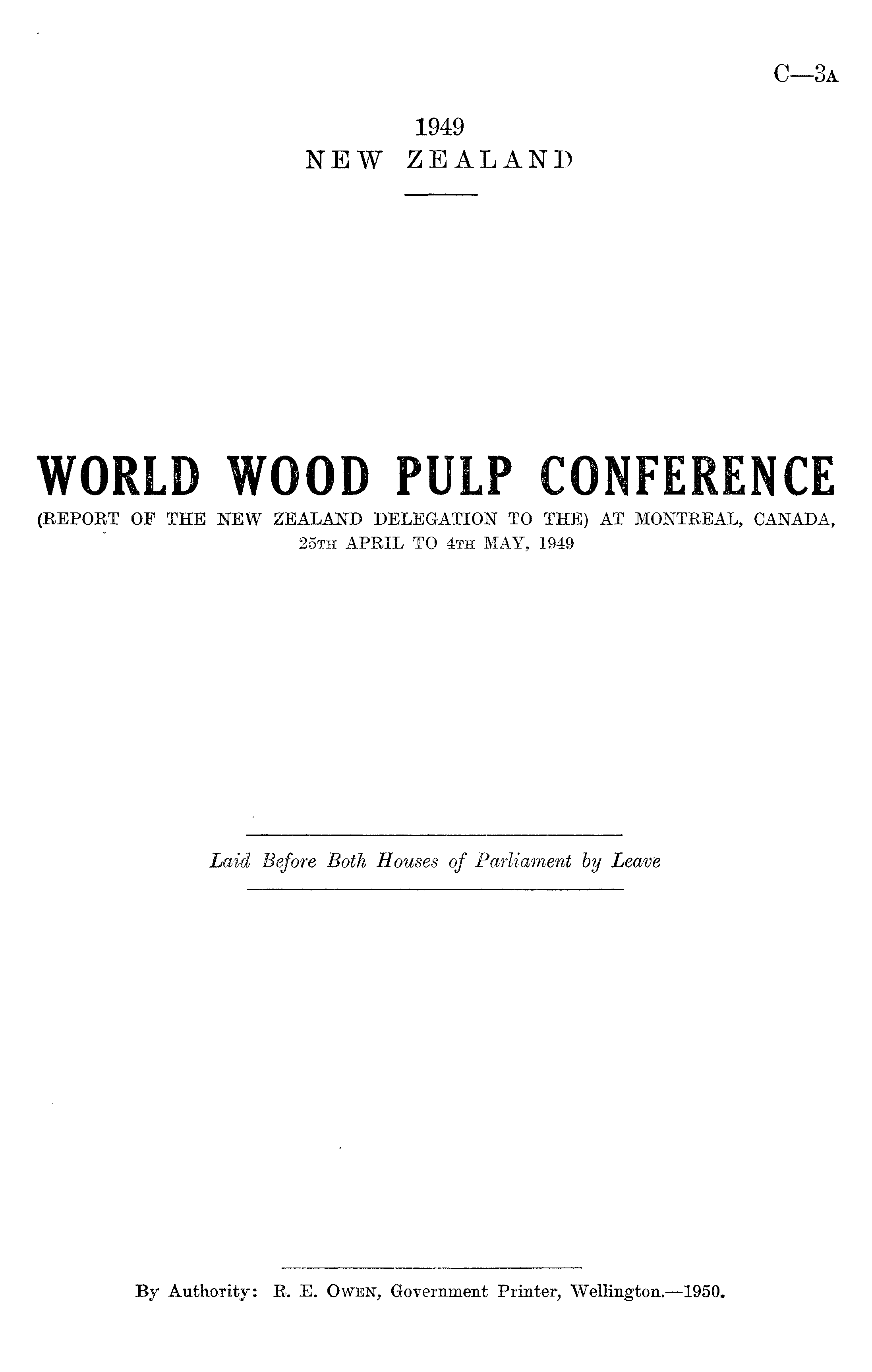 WORLD WOOD PULP CONFERENCE (REPORT OF THE NEW ZEALAND DELEGATION TO THE) AT MONTREAL, CANADA, 25th APRIL TO 4th MAY, 1949
