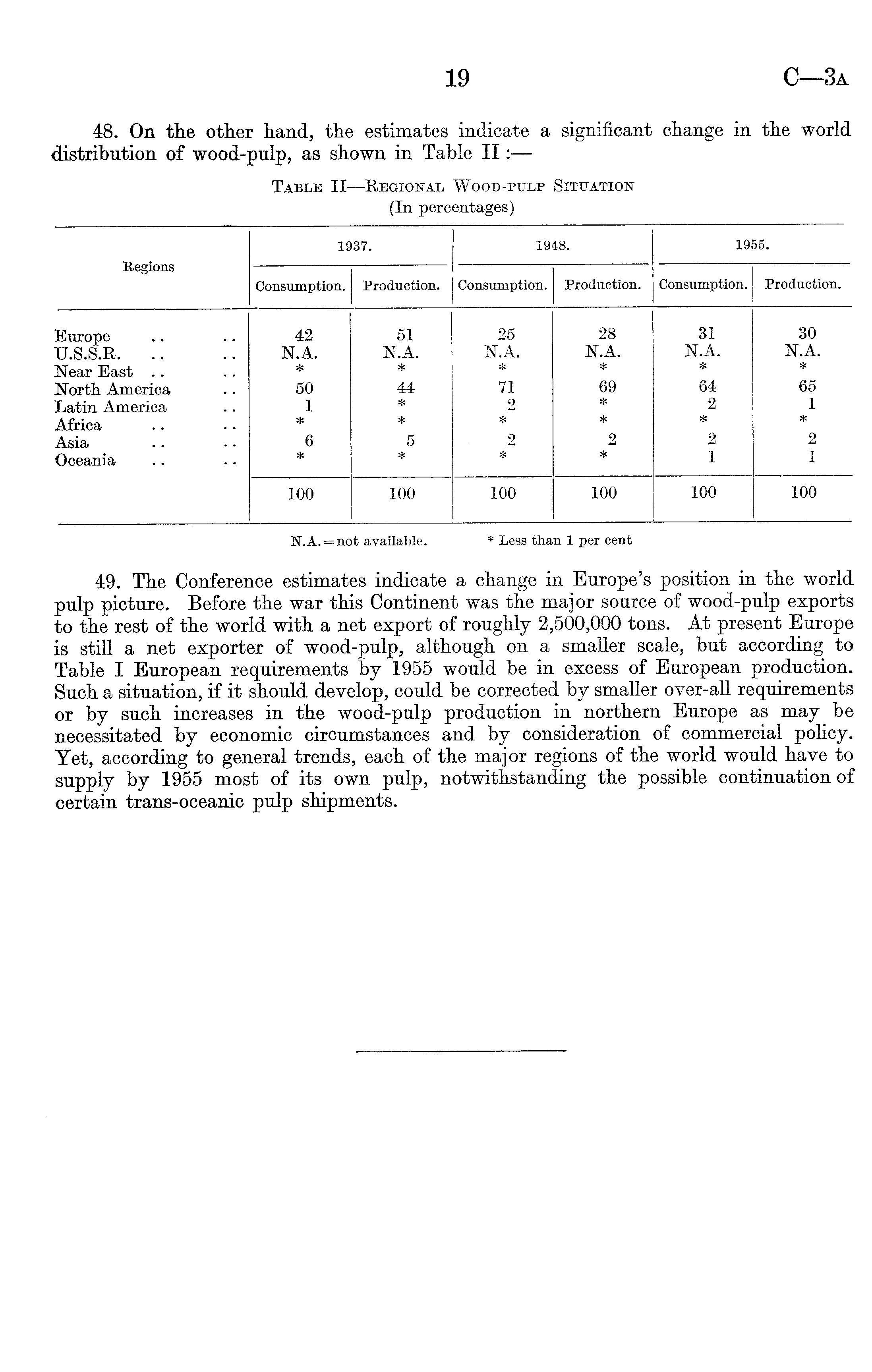 48. On the other hand, the estimates indicate a significant change in the world distribution of wood-pulp, as shown in Table II: —