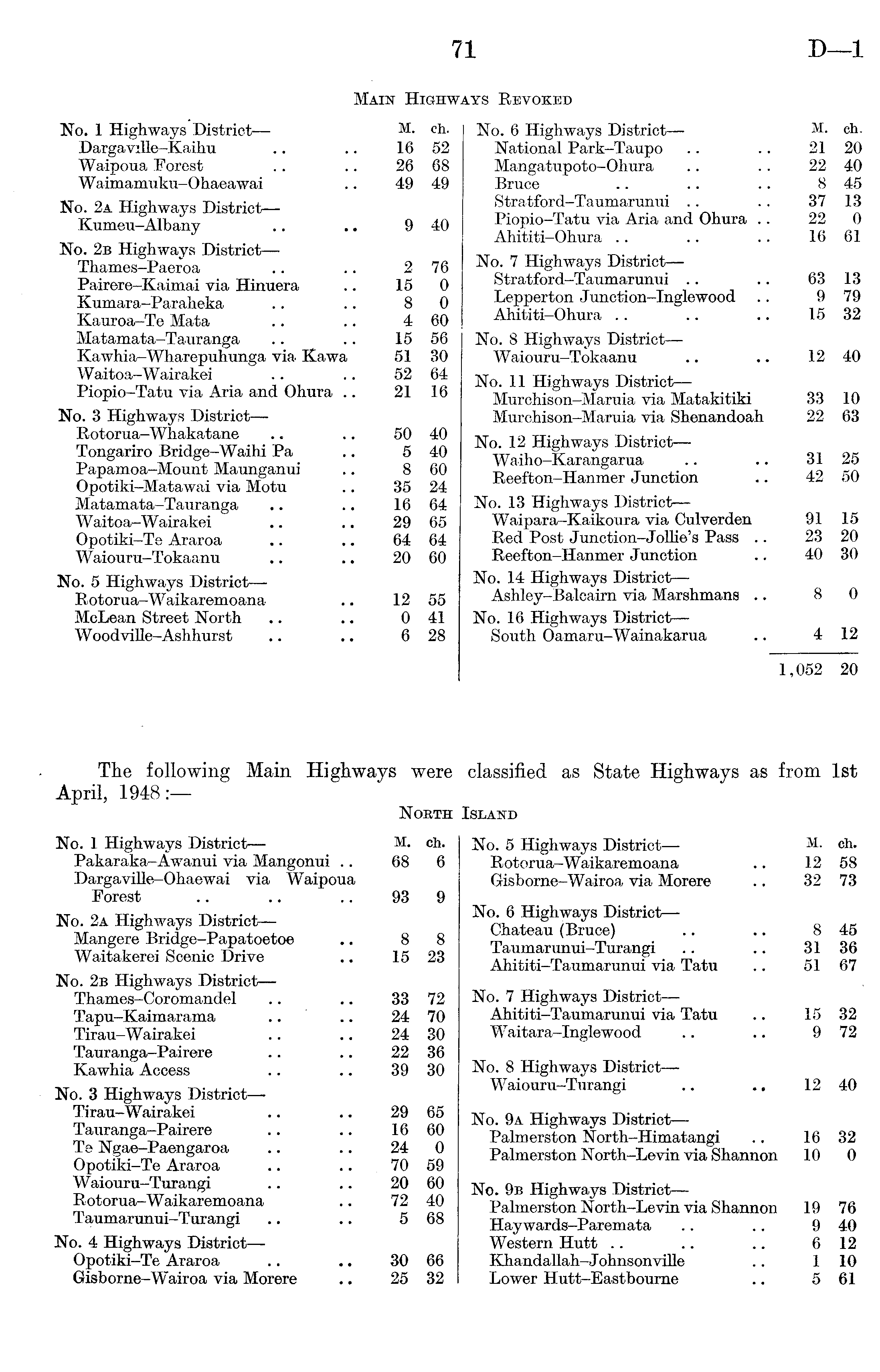 The following Main Highways were classified as State Highways as from Ist April, 1948: North Island