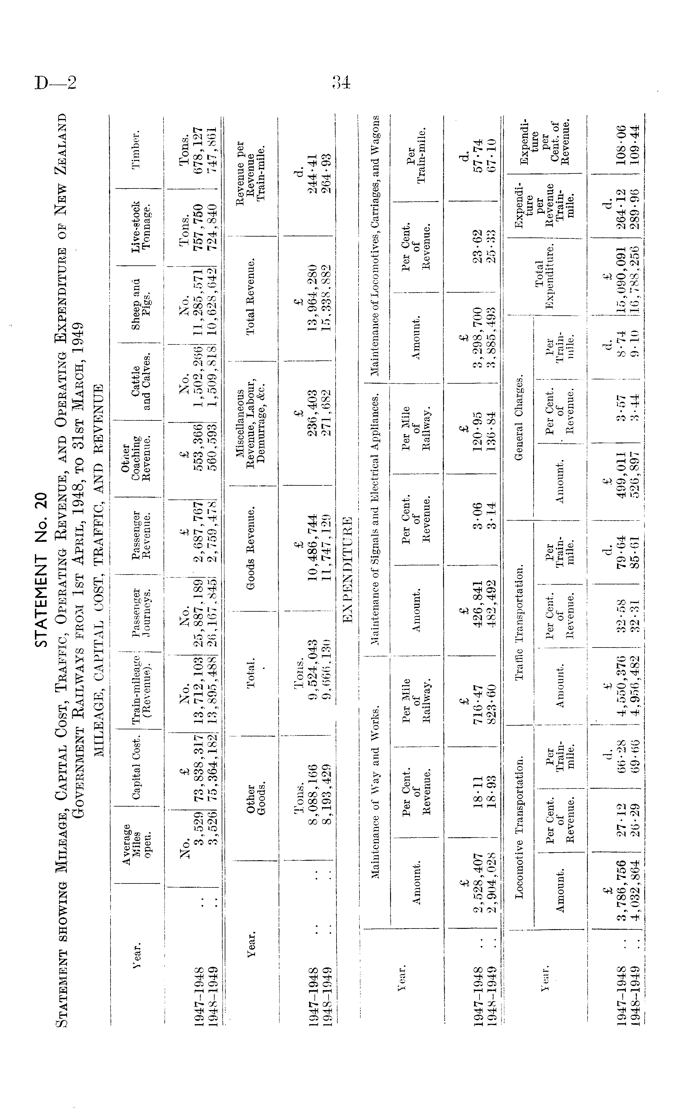 Timber. Tons. 678,127 747,861 Revenue per Revenue Train-mile. f-H CO # Ci co ■s® S8P V fl Tons. 757,750 724,840 CD £ 13,964,280 15,338,882 Sheep ana Pigs. No. 11,285,571 10,628,642 Total Revenu 02 CO 00 CO H Cattle and Calve <N GO n e* oT 5oo io io ?—H f-H H* CO CN O 00 CO crt * * co i—' Other Coaching Revenue. £ 553,366 560,593 111 CO l> Passenger Revenue. £ ' 2,687,767 2,759,478 1 > £ 3 . o £ 0,486,744 1,747,129 Passenger Journeys. cs io 00 riH H GO^ o ci5 £ 00 CO 2$ 00 r-H l© CO <N (M CO o T*I CO Train-mileage (Revenue). CO GO 23 gSS OO CO CO Total. Tons. 9.524.0 9.666.1 Capital Cost. £ 73,838,317 75,364,182 2^ sg CO Ci co e<j . rH TH 02 * * Cj OO CO O00O5 Oo UjOH 00 00 Lverage Miles open. No. 3,529 3,526 M © 8 1947-1948 1948-1949 1947-1948 1948-1949