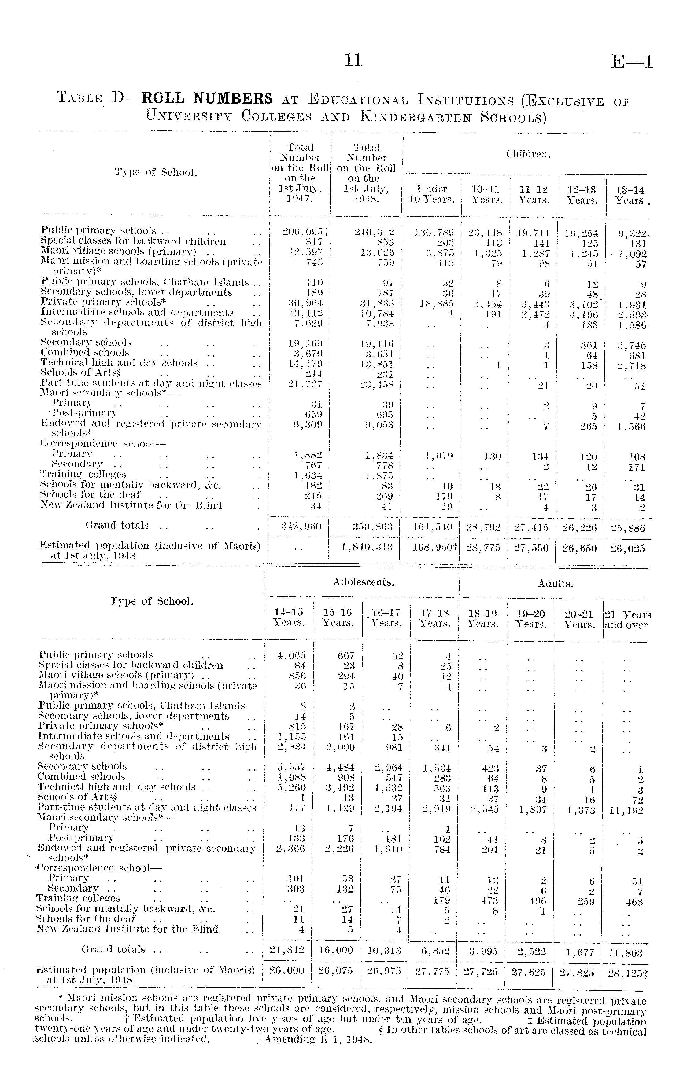 • . | | , | j. | * Maori mission schools are registered private primary schools, and Maori secondary schools are registered private secondary schools, but in this table these schools are considered, respectively, mission schools and Maori post-primary schools. f Estimated population five years of age but under ten years of age. 1 Estimated population twenty-one years of age and under twenty-two years of age. • § In other tables schools of art'are classed as technical schools unless otherwise indicated. || Amending E 1, 1948.