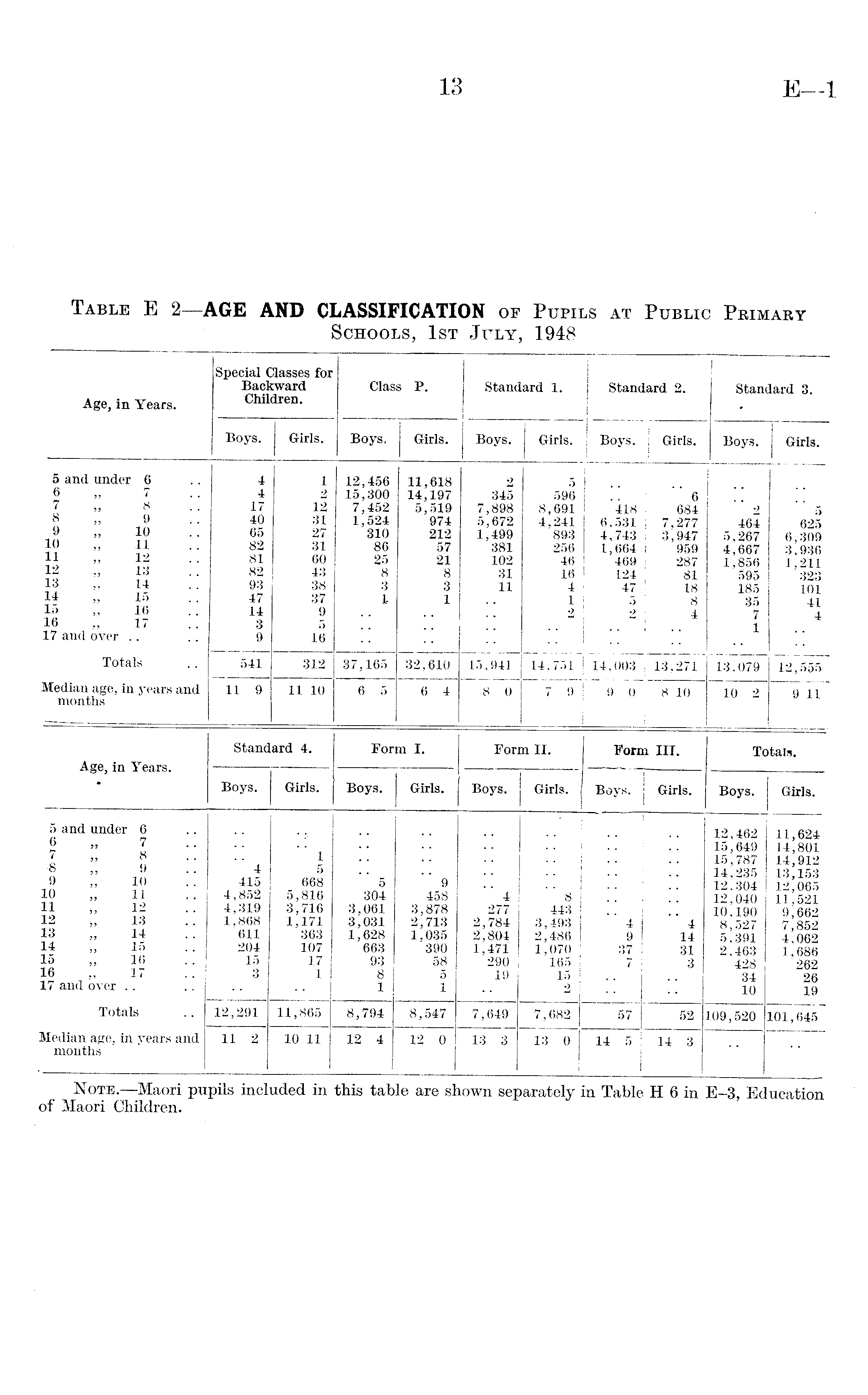 Table E2—AGE AND CLASSIFICATION of Pupils at Public Primary Schools, 1st July, 1948