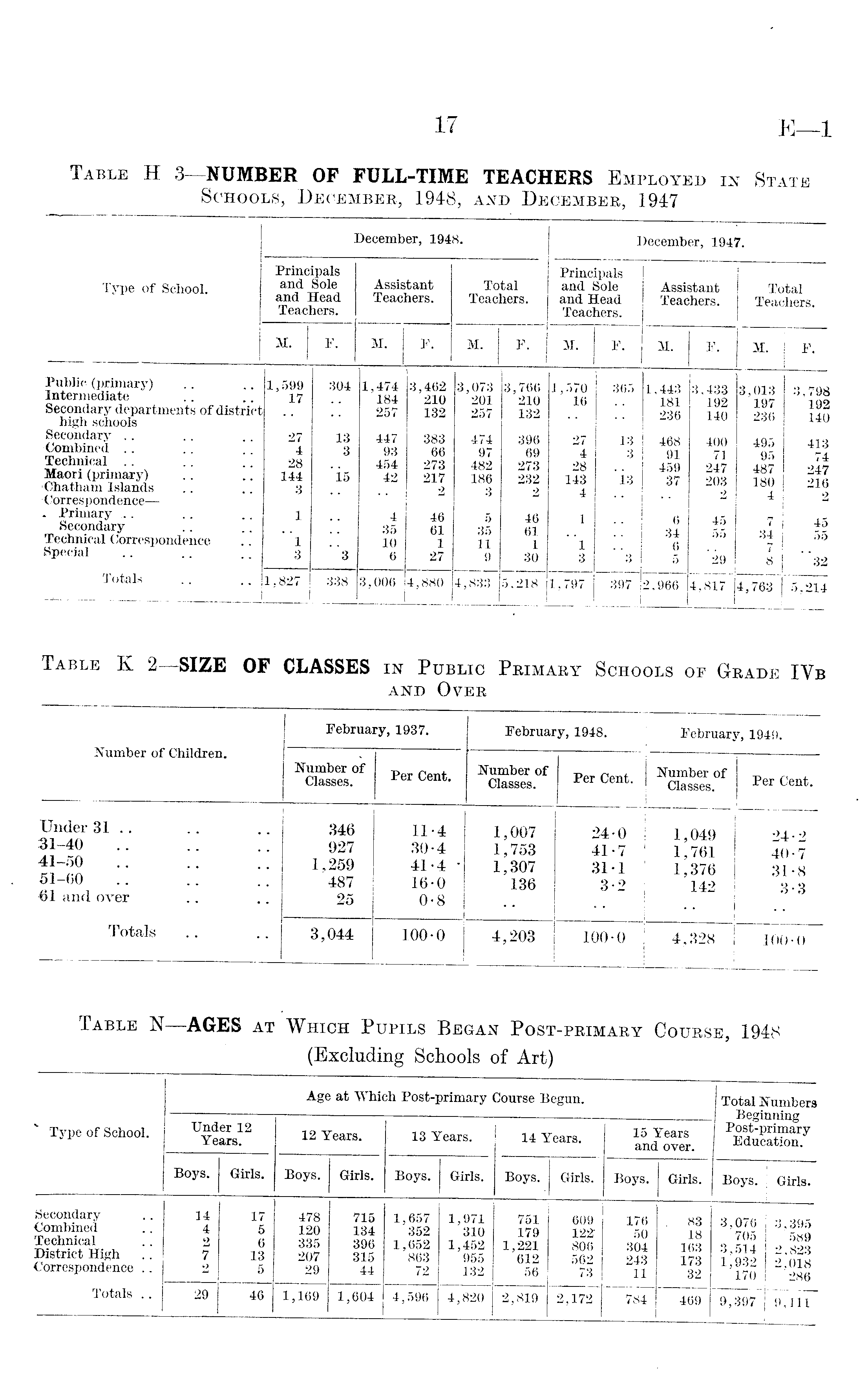 Table H3 —NUMBER OF FULL-TIME TEACHERS Employed in State Schools, December, 1948, and December, 1947