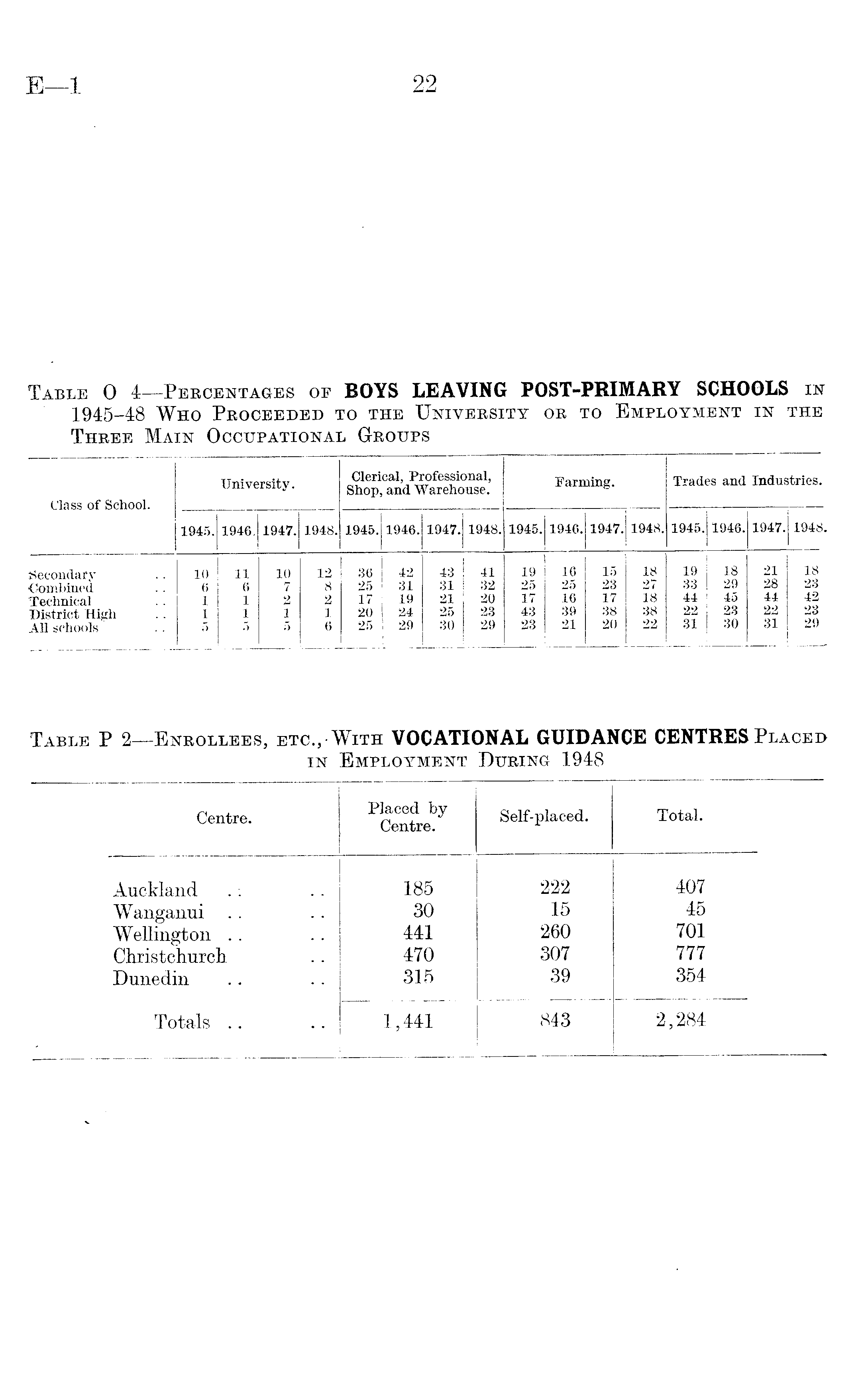 Table P2—Enrollees, etc., With VOCATIONAL GUIDANCE CENTRES Placed in Employment During 1948