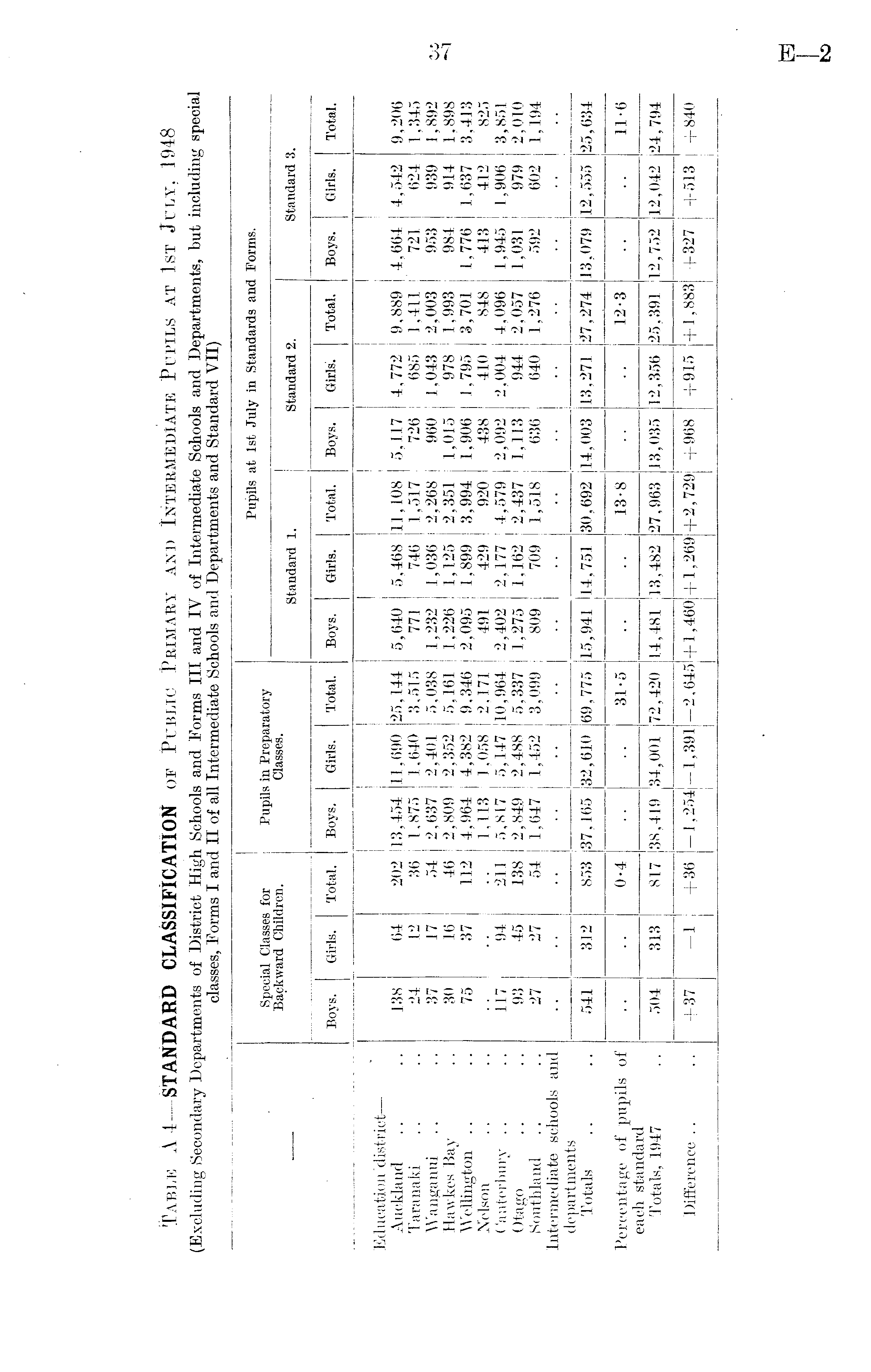 Table A4—STANDARD CLASSIFICATION of Public Primary and Intermediate Pupils at 1st July, 1948 (Excluding Secondary Departments of District High Schools and Forms III and IV of Intermediate Schools and Departments, but including special classes, Forms I and II of all Intermediate Schools and Departments and Standard VII)