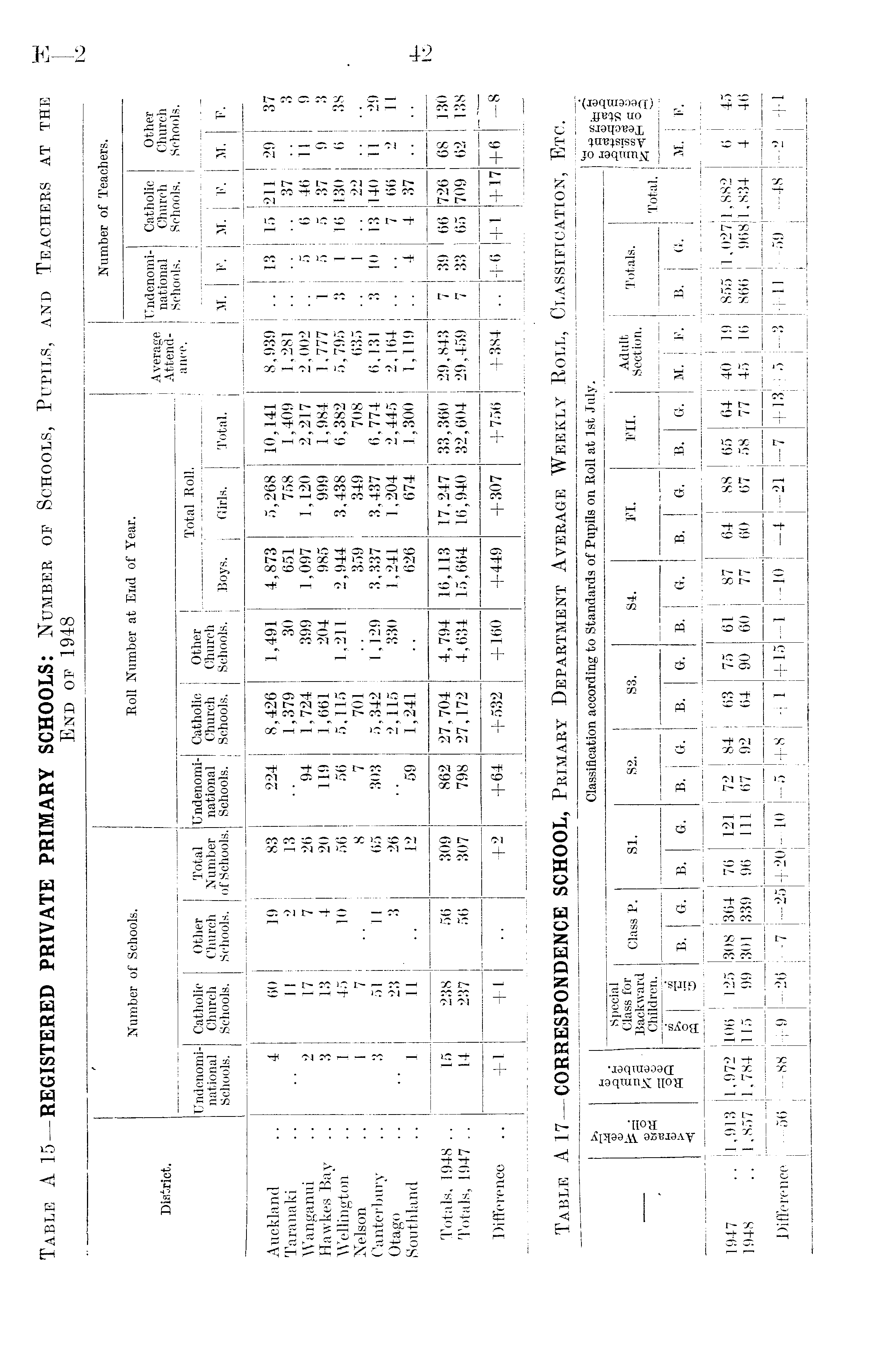 Table A15—REGISTERED PRIVATE PRIMARY SCHOOLS: Number of Schools, Pupils, and Teachers at the End of 1948