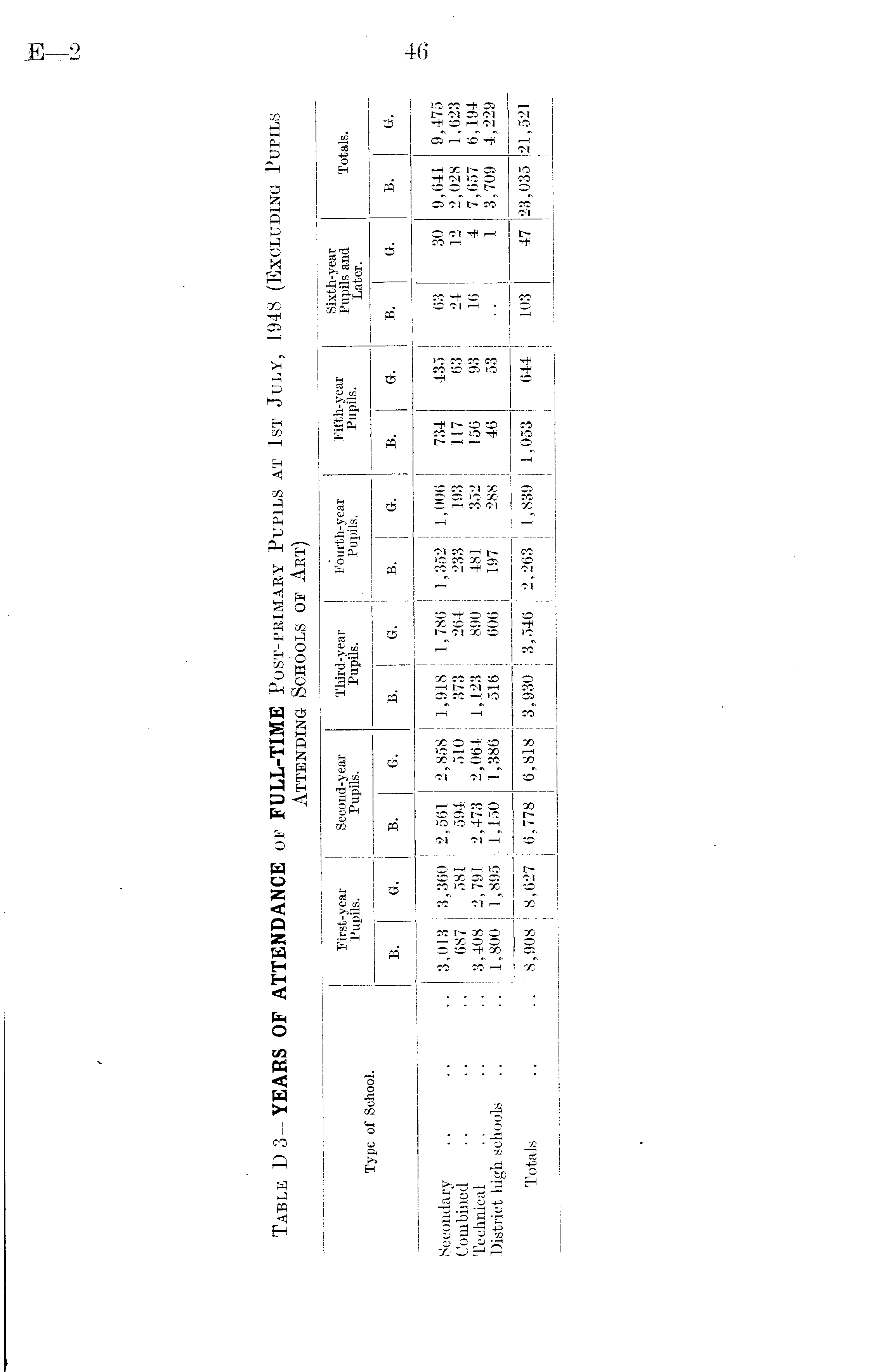 Table D3—YEARS OF ATTENDANCE of FULL-TIME Post-primary Pupils at 1st July, 1948 (Excluding Pupils Attending Schools of Art)