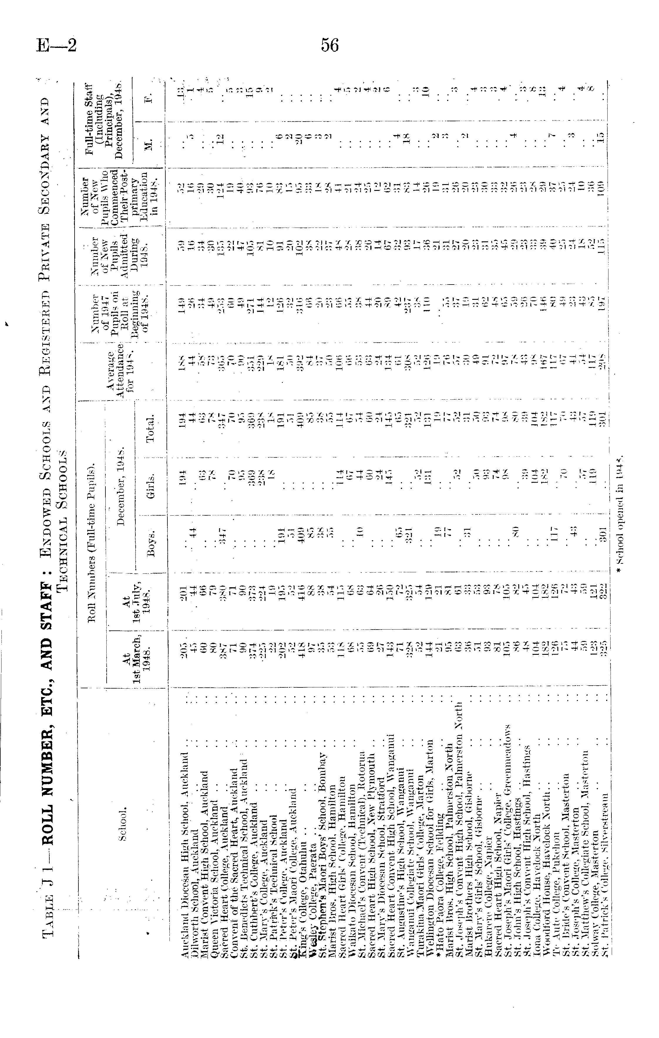 Table J1—ROLL NUMBER, ETC., AND STAFF: Endowed Schools and Registered Private Secondary and Technical Schools