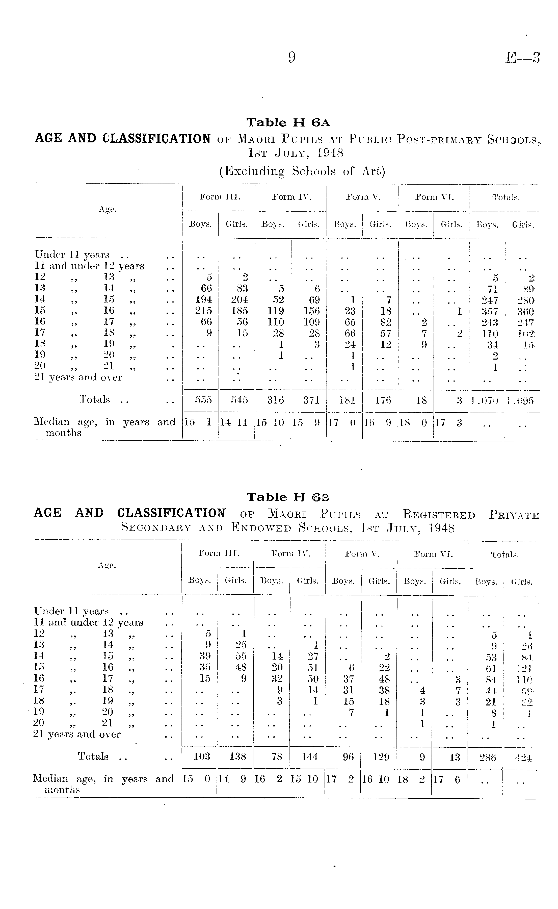 Table H6a AGE AND CLASSIFICATION of Maori Pupils at Public Post-primary Schools, 1st July, 1948 (Excluding Schools of Art)