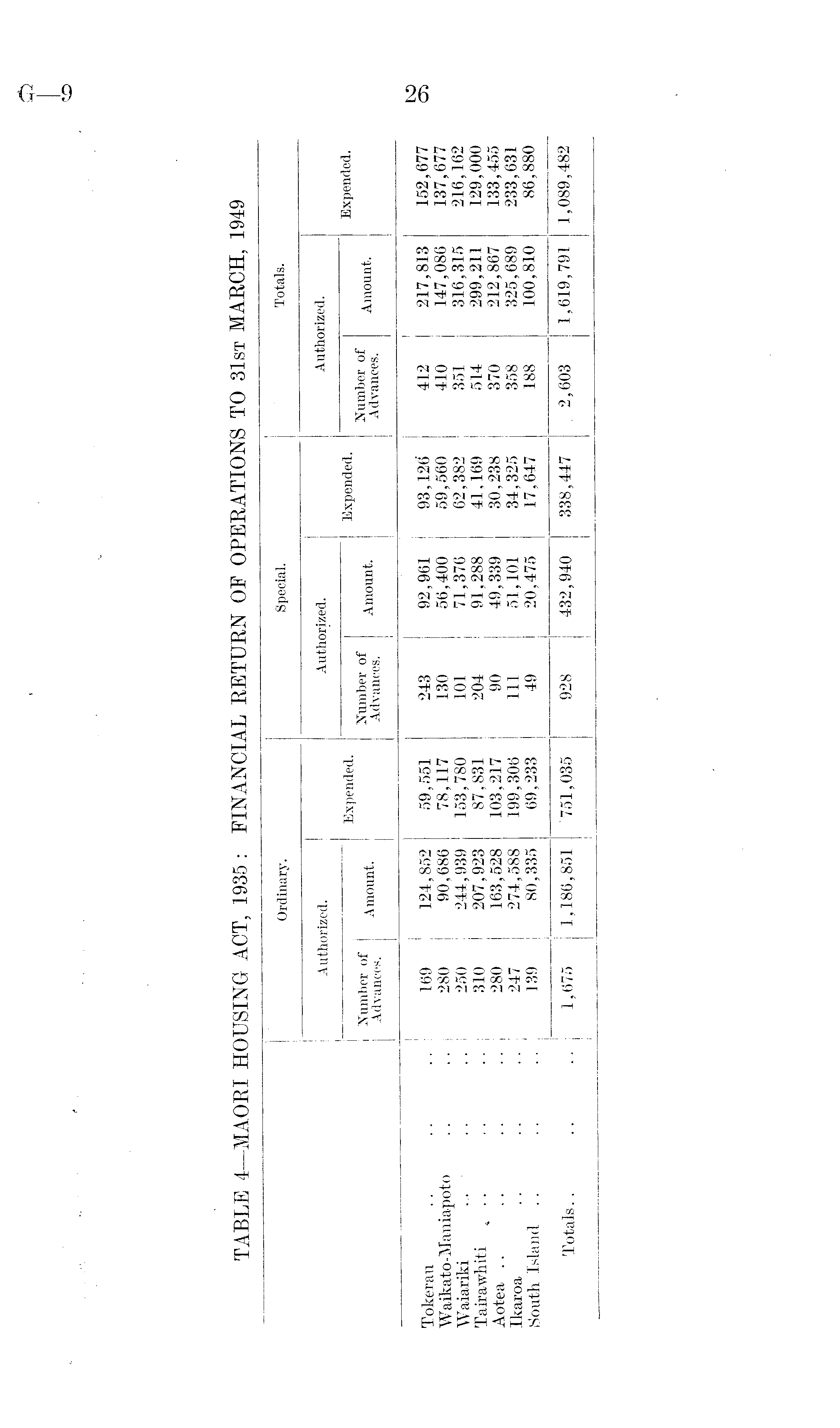 TABLE 4—MAORI HOUSING ACT, 1935: FINANCIAL RETURN OF OPERATIONS TO 31st MARCH, 1949