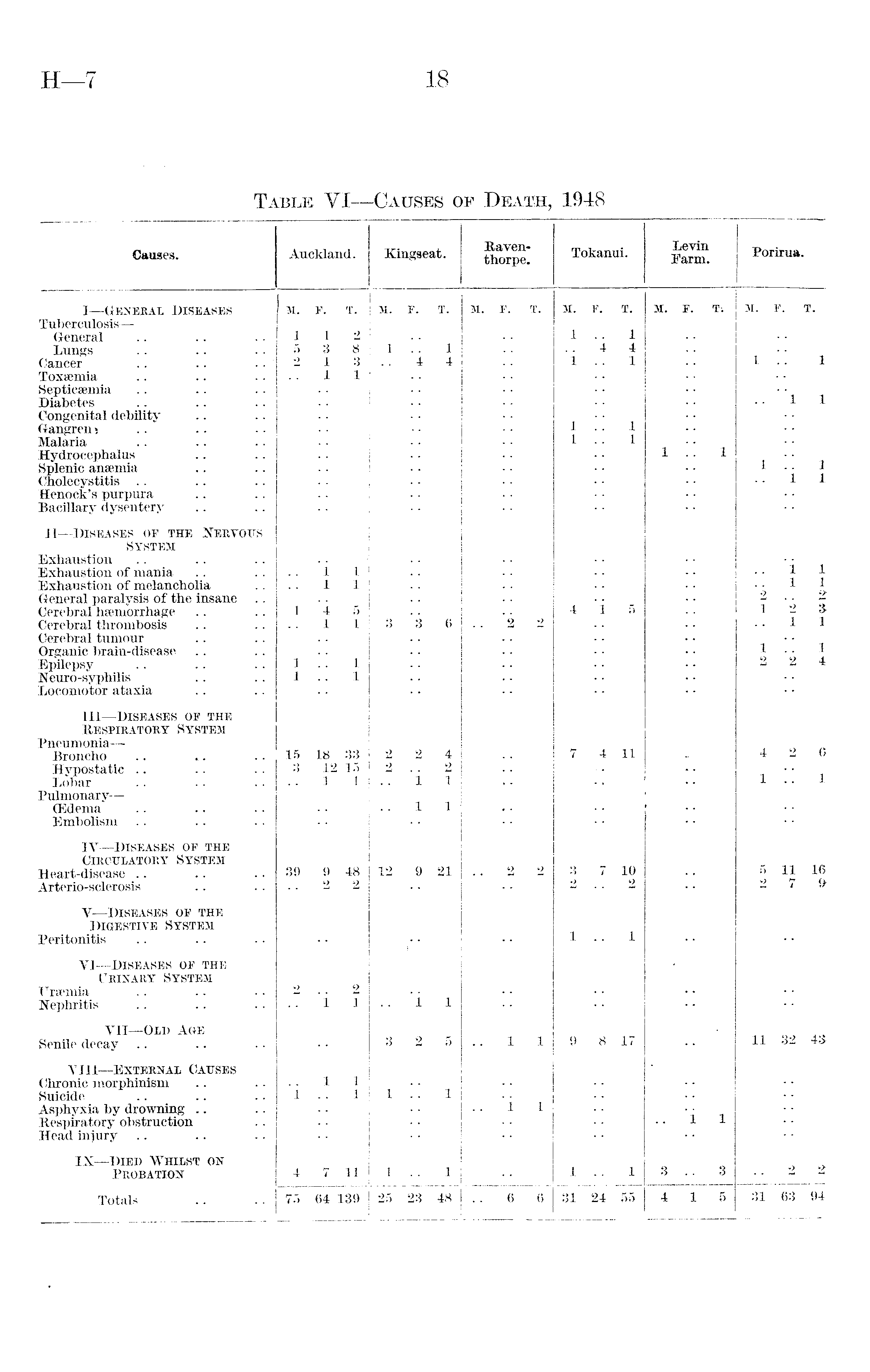 Table VI—Causes of Death, 1948