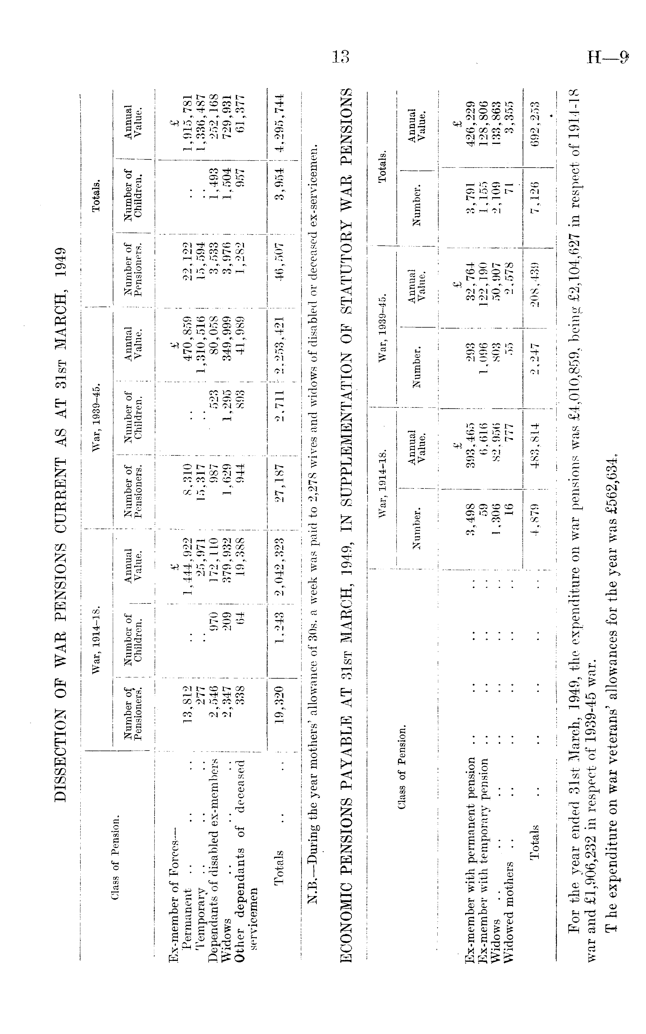 DISSECTION OF WAR PENSIONS CURRENT AS AT 31st MARCH, 1949