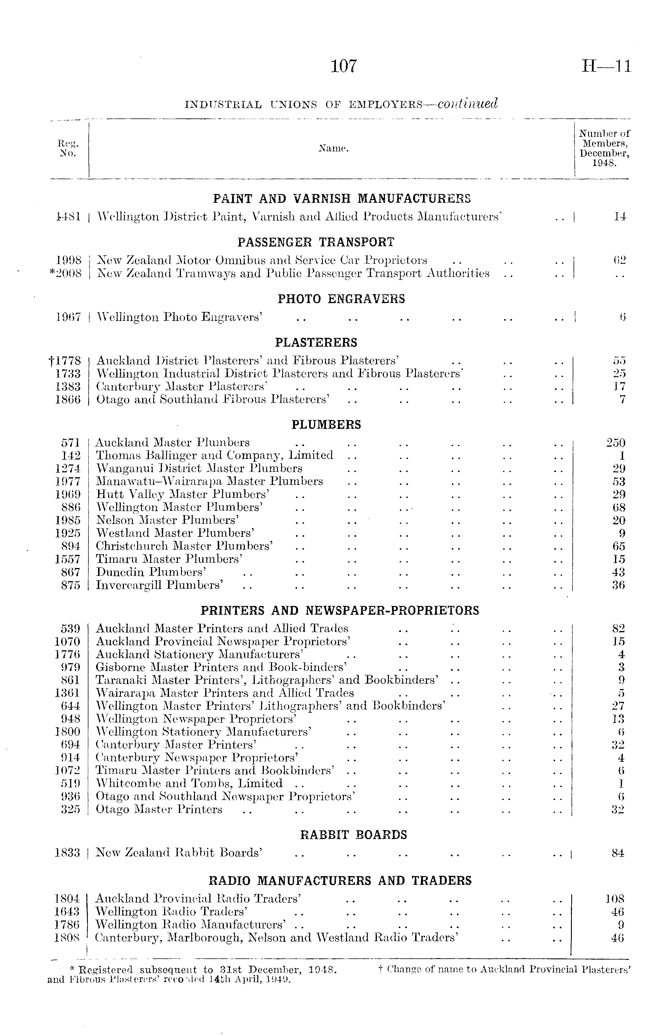 Reg. No. Name. Number of Members, December, 1948. PAINT AND VARNISH MANUFACTURERS M81 Wellington District Paint, Varnish and Allied Products Manufacturers' 1 14 PASSENGER TRANSPORT 1998 New Zealand Motor Omnibus and Service Car Proprietors 62 *2008 New Zealand Tramways and Public Passenger Transport Authorities PHOTO ENGRAVERS 1967 Wellington Photo Engravers' 1 6 PLASTERERS fl778 Auckland District Plasterers' and Fibrous Plasterers' .. .. 55 1733 Wellington Industrial District Plasterers and Fibrous Plasterers' 25 1383 Canterbury Master Plasterers' 17 1866 Otago and Southland Fibrous Plasterers' 7 PLUMBERS 571 Auckland Master Plumbers 250 142 Thomas Ballinger and Company, Limited .. .. .. .. 1 1274 Wanganui District Master Plumbers 29 1977 Manawatu—Wairarapa Master Plumbers 53 1969 Hutt Valley Master Plumbers' 29 886 Wellington Master Plumbers' 68 1985 Nelson Master Plumbers' .. 20 1925 Westland Master Plumbers' 9 894 Christchurch Master Plumbers' .. .. .. . . 65 1557 Timaru Master Plumbers' 15 867 Dunedin Plumbers' 43 875 Invercargill Plumbers' 36 PRINTERS AND NEWSPAPER-PROPRIETORS 539 Auckland Master Printers and Allied Trades 82 1070 Auckland Provincial Newspaper Proprietors' .. 15 1776 Auckland Stationery Manufacturers' 4 979 Gisborne Master Printers and Book-binders' 3 861 Taranaki Master Printers', Lithographers' and Bookbinders' 9 1361 Wairarapa Master Printers and Allied Trades 5 644 Wellington Master Printers' Lithographers' and Bookbinders' 27 948 Wellington Newspaper Proprietors' 13 1800 Wellington Stationery Manufacturers' .. .. .. .. ' 6 694 Canterbury Master Printers' 32 914 Canterbury Newspaper Proprietors' 4 1072 Timaru Master Printers and Bookbinders' 6 519 Whitcombe and Tombs, Limited .. .. • 1 936 Otago and Southland Newspaper Proprietors' 6 325 Otago Master Printers .. 32 RABBIT BOARDS 1833 | New Zealand Rabbit Boards' .. .. .. .. .. .. | 84 RADIO MANUFACTURERS AND TRADERS 1804 Auckland Provincial Radio Traders' 108 1643 Wellington Radio Traders' 46 1786 Wellington Radio Manufacturers' 9 1808 1 i Canterbury, Marlborough, Nelson and Westland Radio Traders' 46 * Registered subsequent to 31st December, 1948. t Change of name to Auckland Provincial Plasterers' and Fibrous Plasterers' recorded 14th April, 1949.