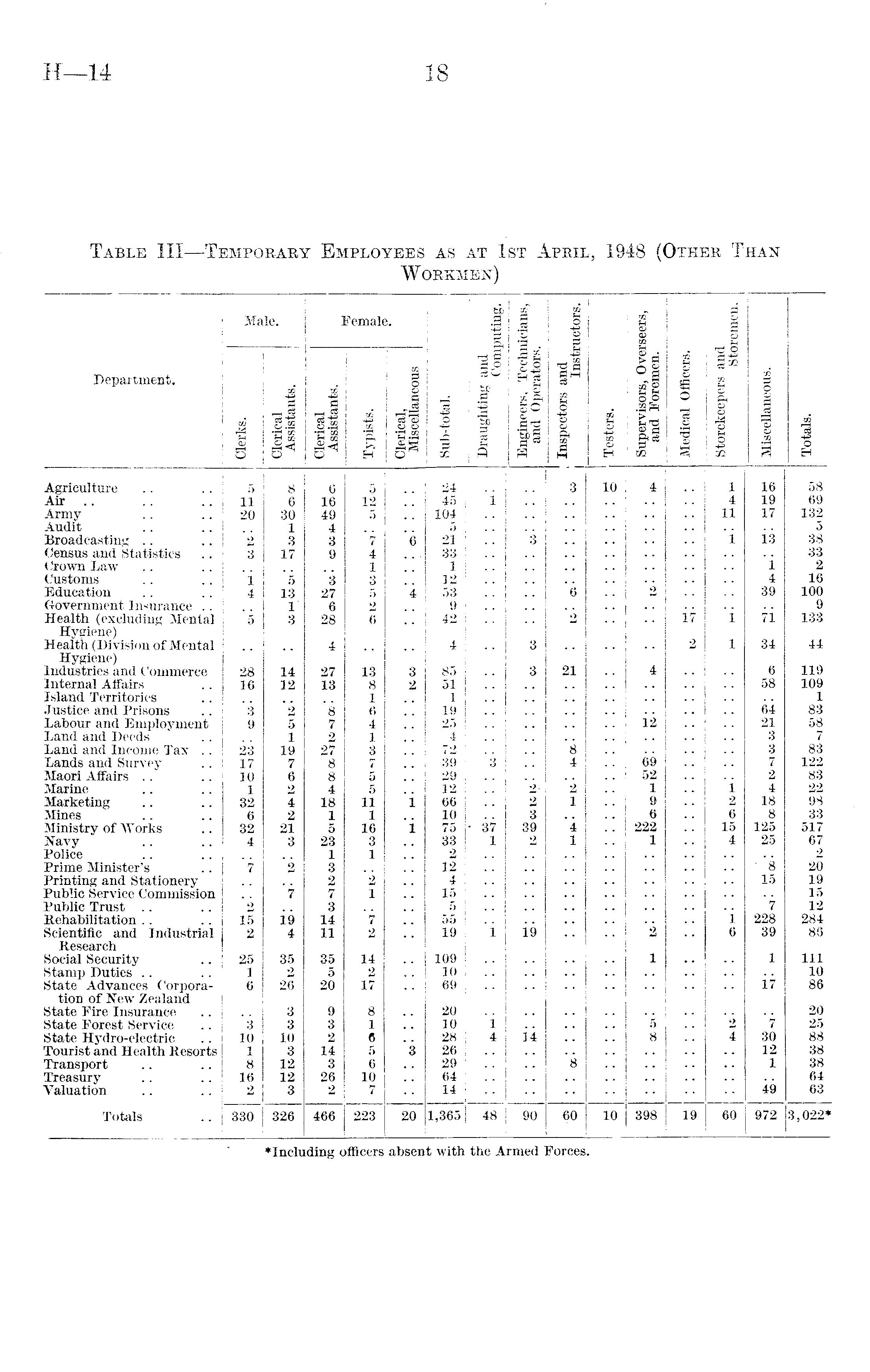 Table III —Temporary Employees as at 1st April, 1948 (Other Than Workmen)