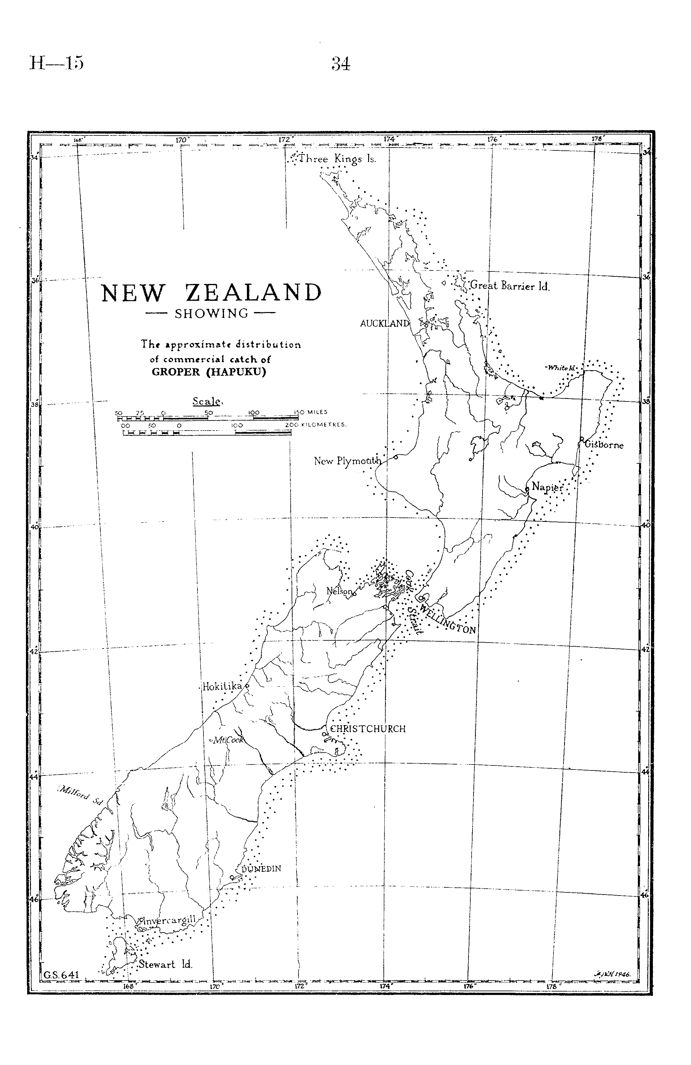 NEW ZEALAND SHOWING The approximate distribution of commercial catch of GROPER (HAPUKU)