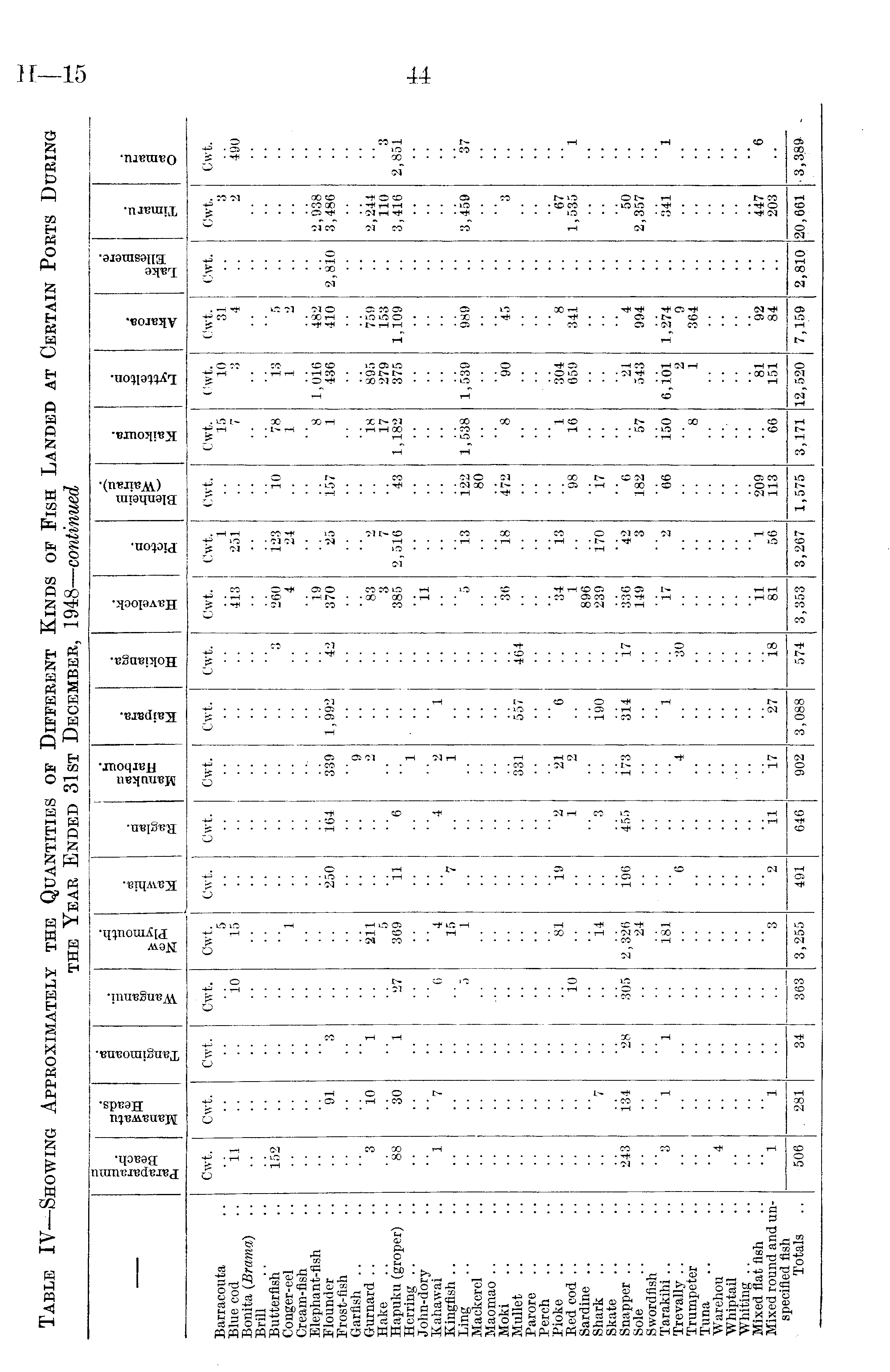 Table IV—Showing Approximately the Quantities of Different Kinds of Fish Landed at Certain Ports During the Year Ended 31st December, 1948— continued