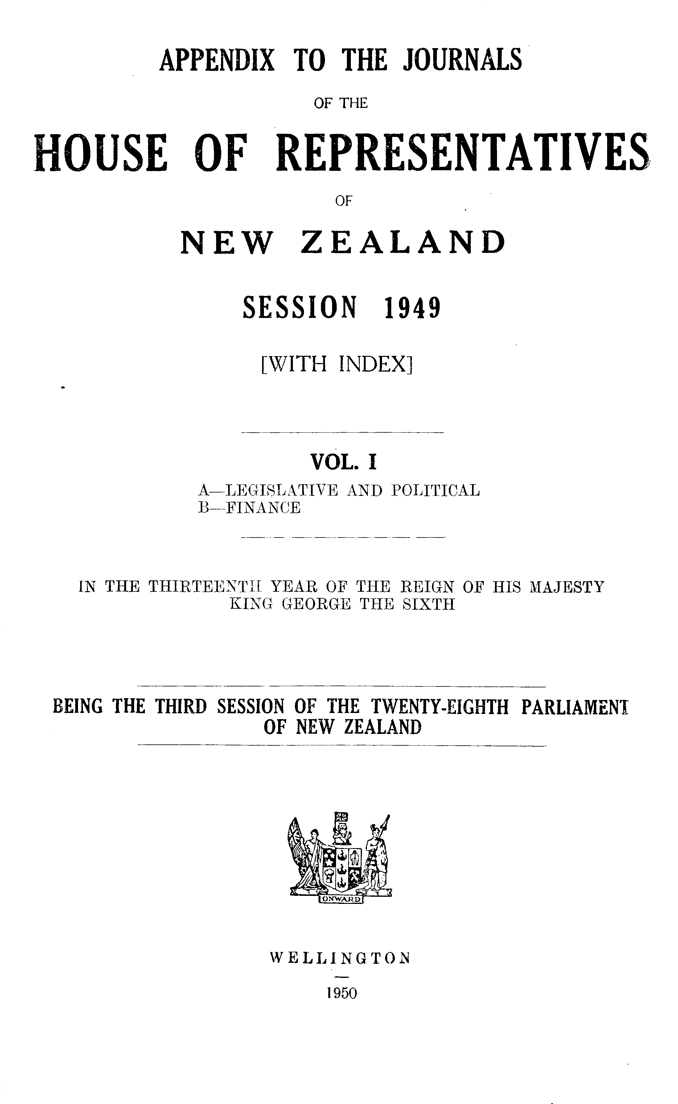 APPENDIX TO THE JOURNALS OF THE HOUSE OF REPRESENTATIVES OF NEW ZEALAND SESSION 1949 [WITH INDEX]