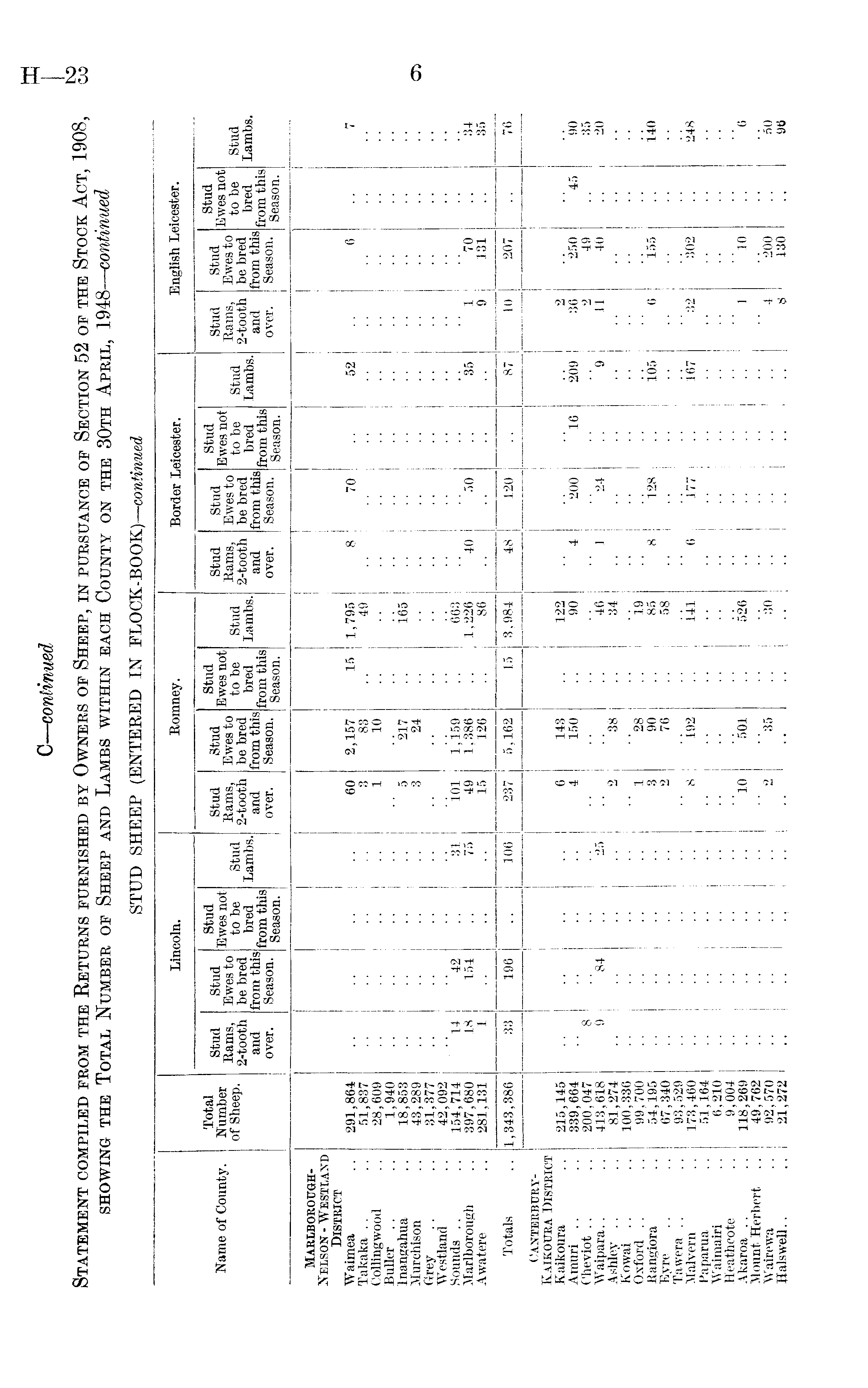 C—continued Statement compiled from the Returns furnished by Owners of Sheep, in pursuance of Section 52 of the Stock Act, 1908, showing the Total Number of Sheep and Lambs within each County on the 30th April, 1948— continued STUD SHEEP (ENTERED IN FLOCK-BOOK)— continued