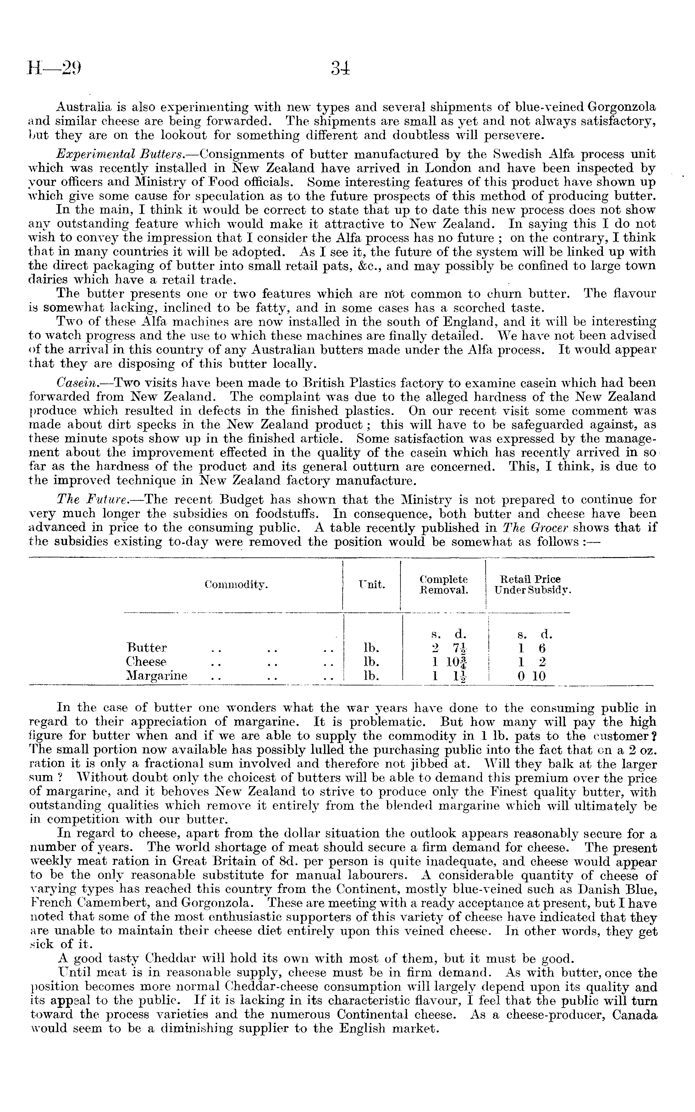 Commodity. Unit. Complete Removal. Ketail Price Under Subsidy. Butter Cheese Margarine lb. lb. lb. s. d. 2 7| 1 10f i u s. d. 1 6 1 2 0 10