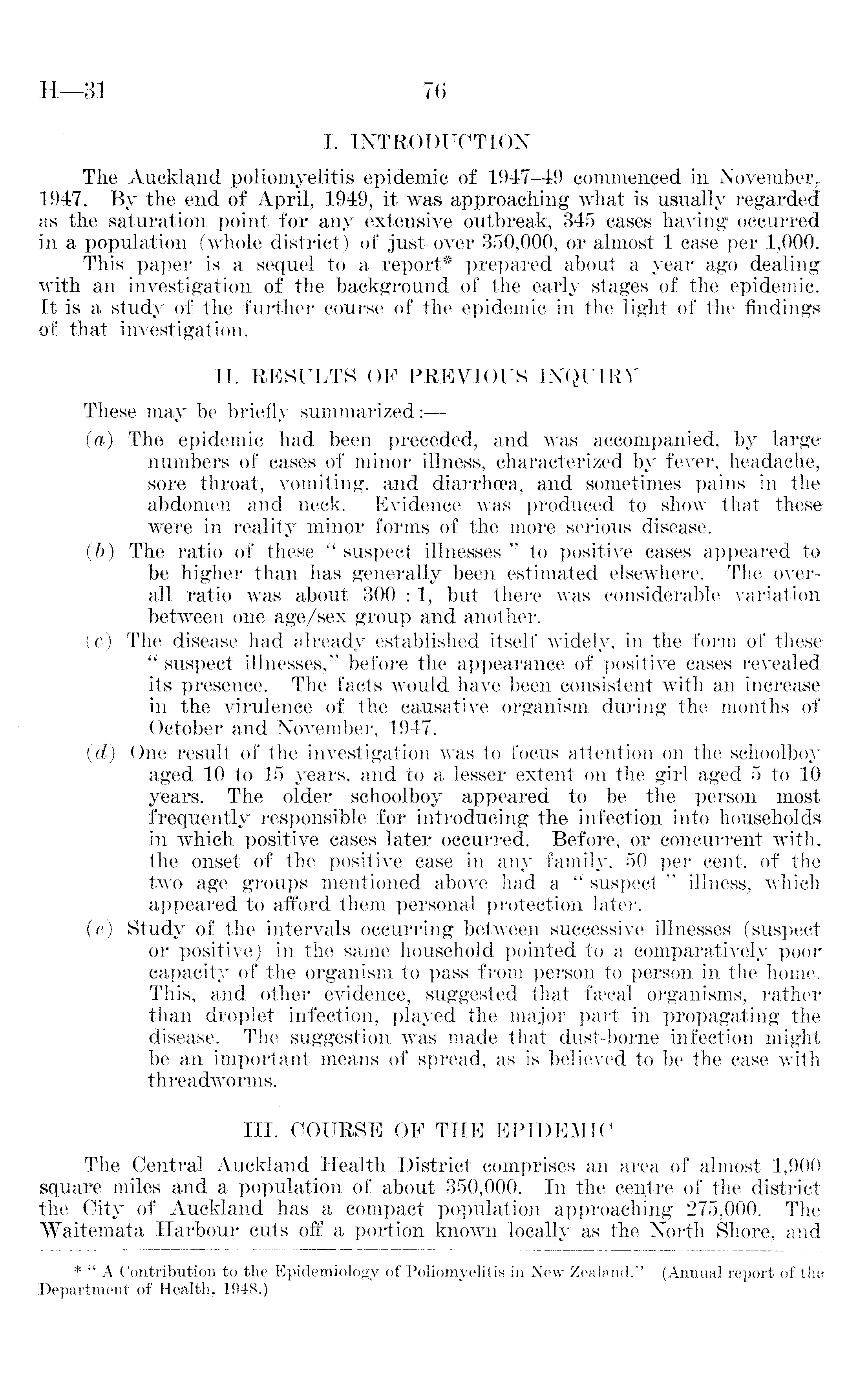 *" A Contribution to the Epidemiology of Poliomyelitis in New Zealand." (Annual report of the Department of Health, 1948.)