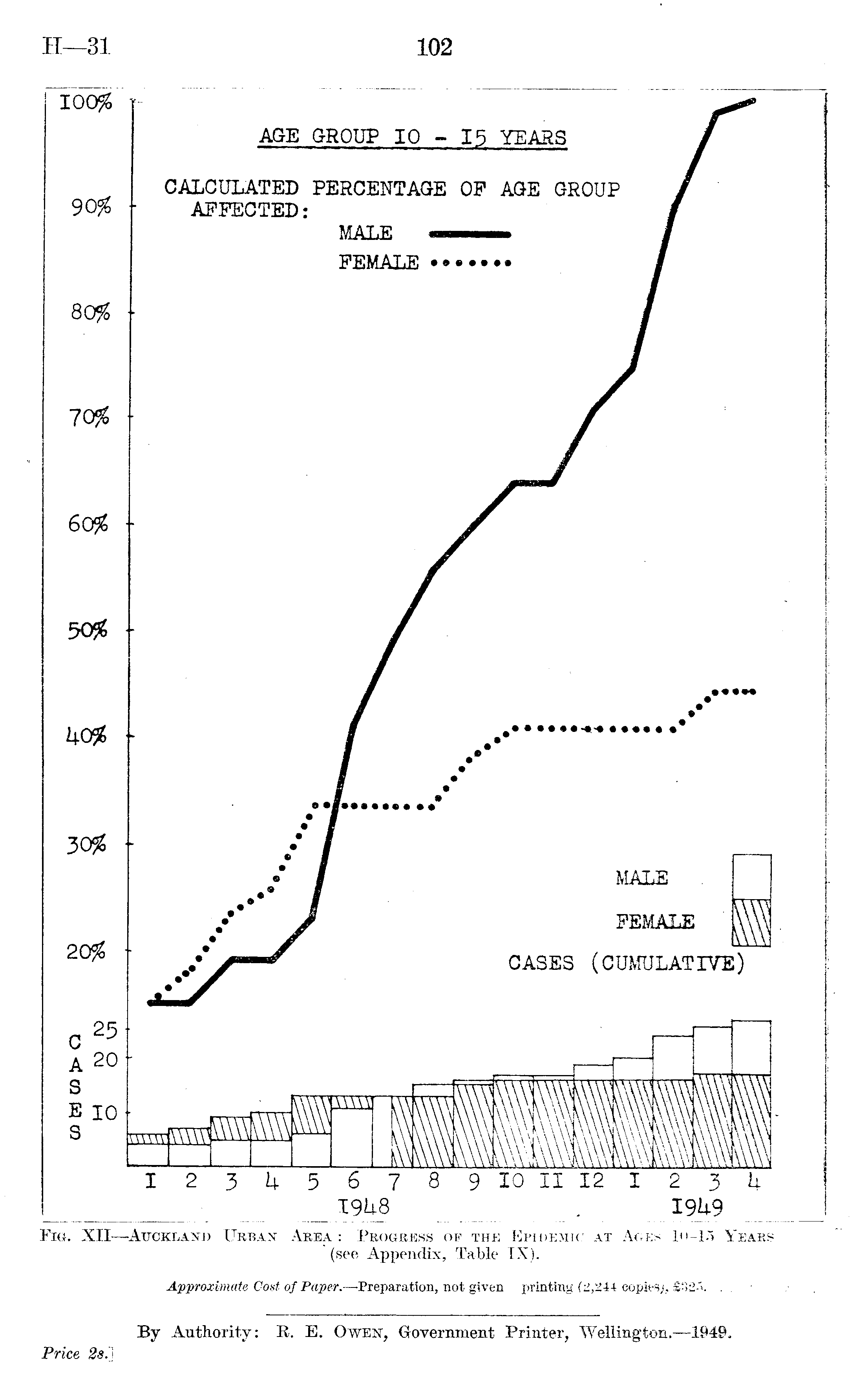Fig. XII —Auckland Urban Area: Progress of the Epidemic at Ages 10-15 Years (see Appendix, Table IX).