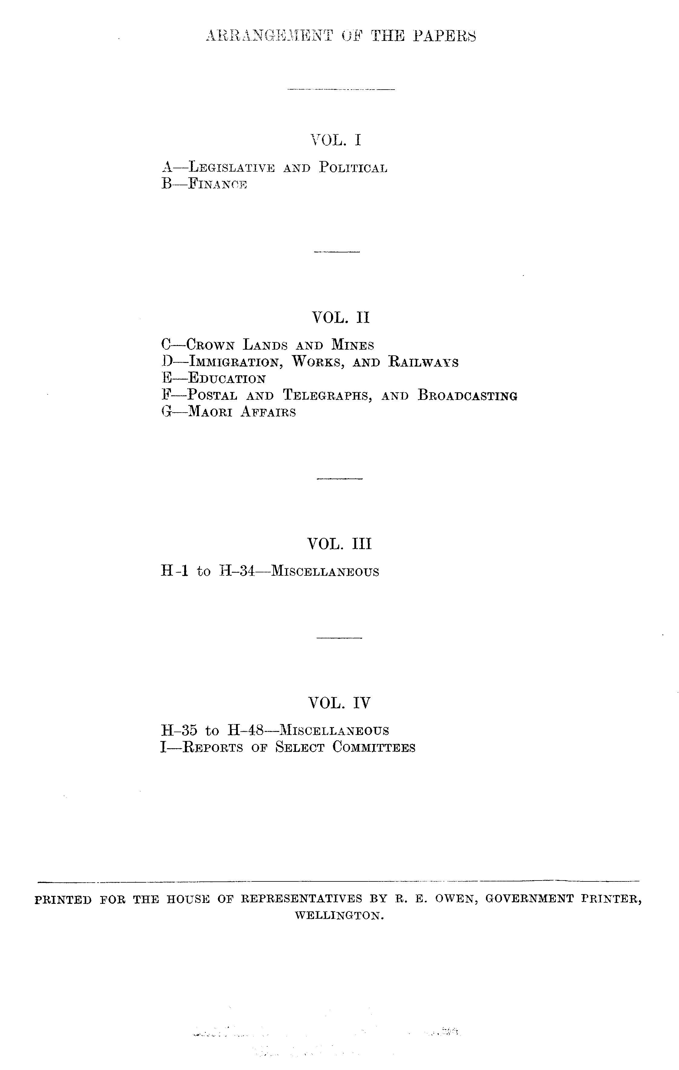VOL. II C —Crown Lands and Mines D —lmmigration, Works, and Railways E —Education F—Postal and Telegraphs, and Broadcasting G—Maori Affairs