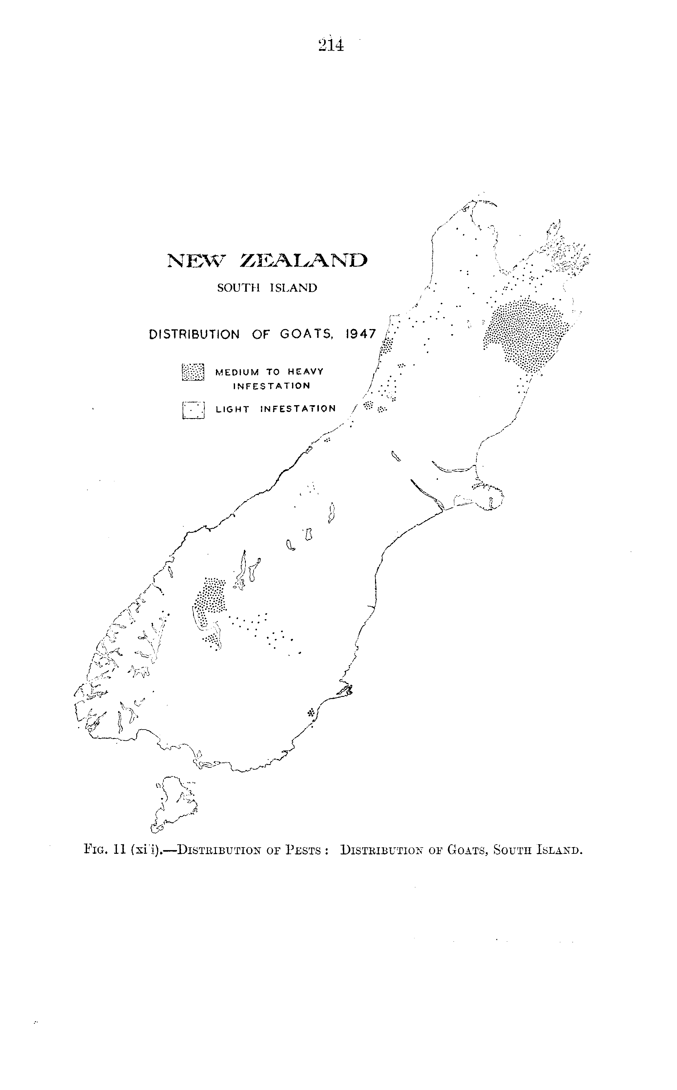 Fig. 11 (xii). —Distribution of Pests: Distribution of Goats, South Island.