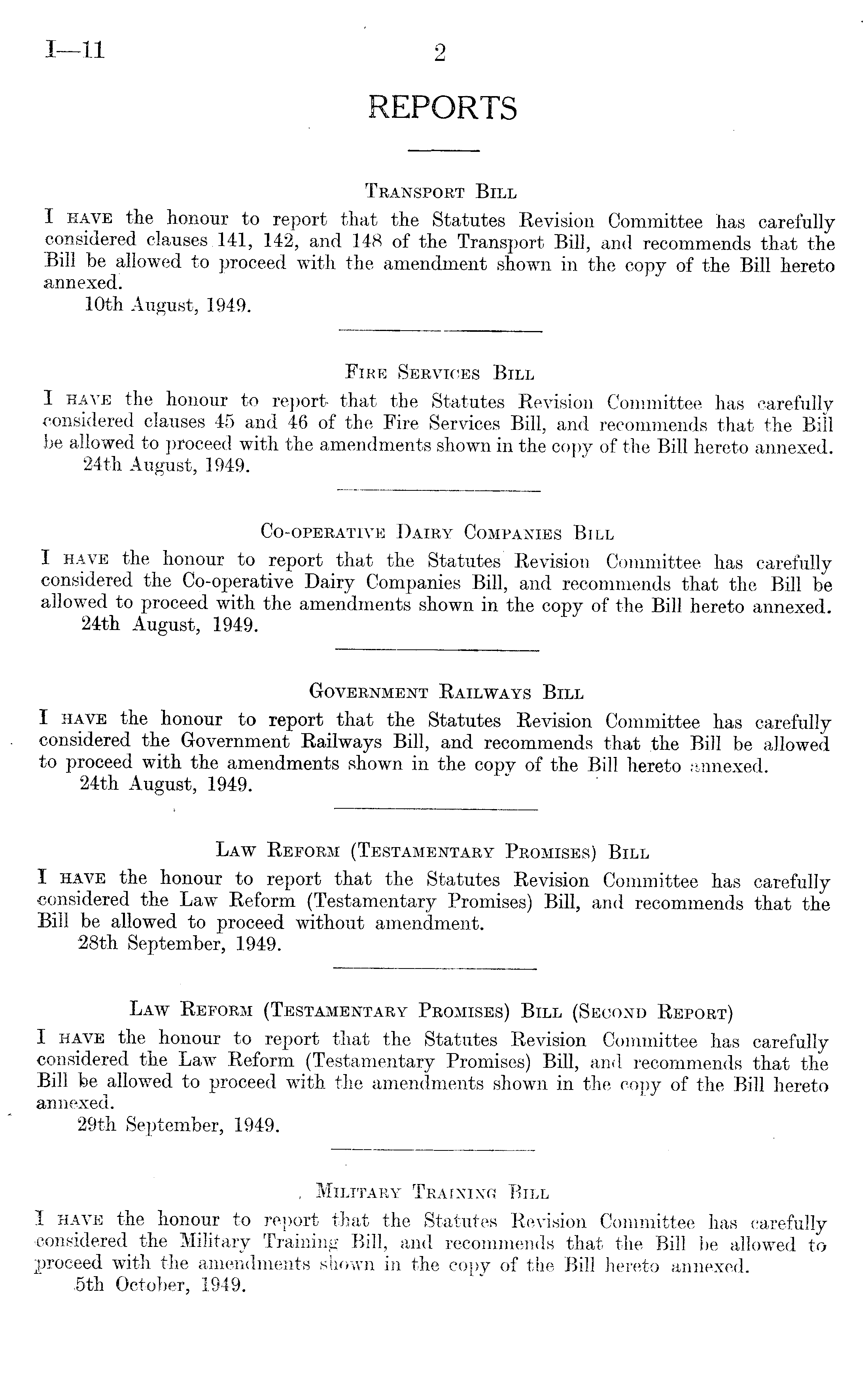 Law Reform (Testamentary Promises) Bill (Second Report) I have the honour to report that the Statutes Revision Committee has carefully considered the Law Reform (Testamentary Promises) Bill, and recommends that the Bill be allowed to proceed with the amendments shown in the copy of the Bill hereto annexed. 29th September, 1949.