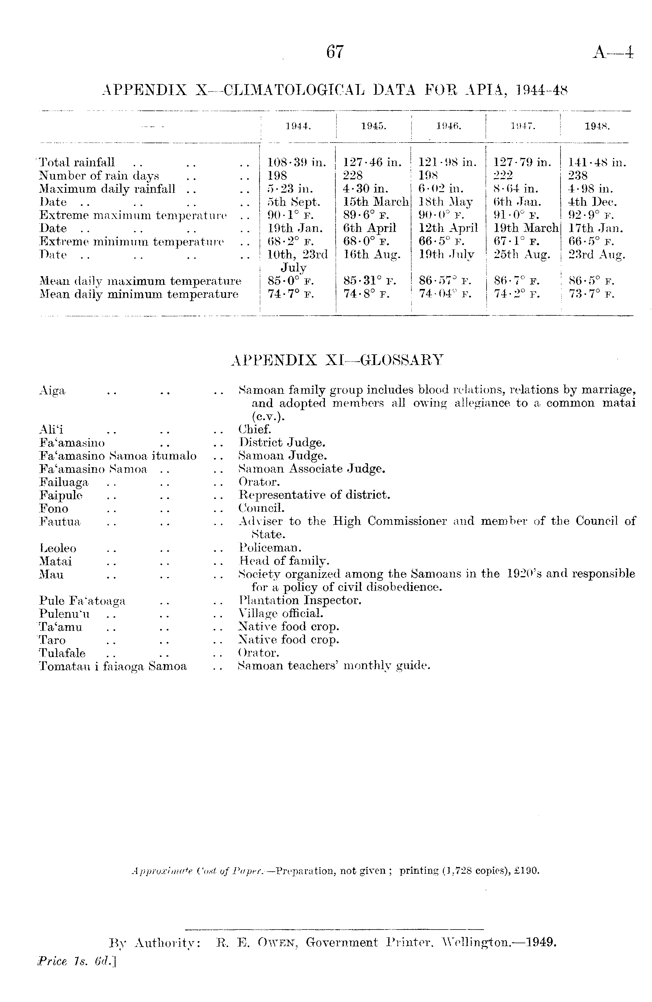 APPENDIX X—CLIMATOLOGRICAL DATA FOR APIA, 1944-48