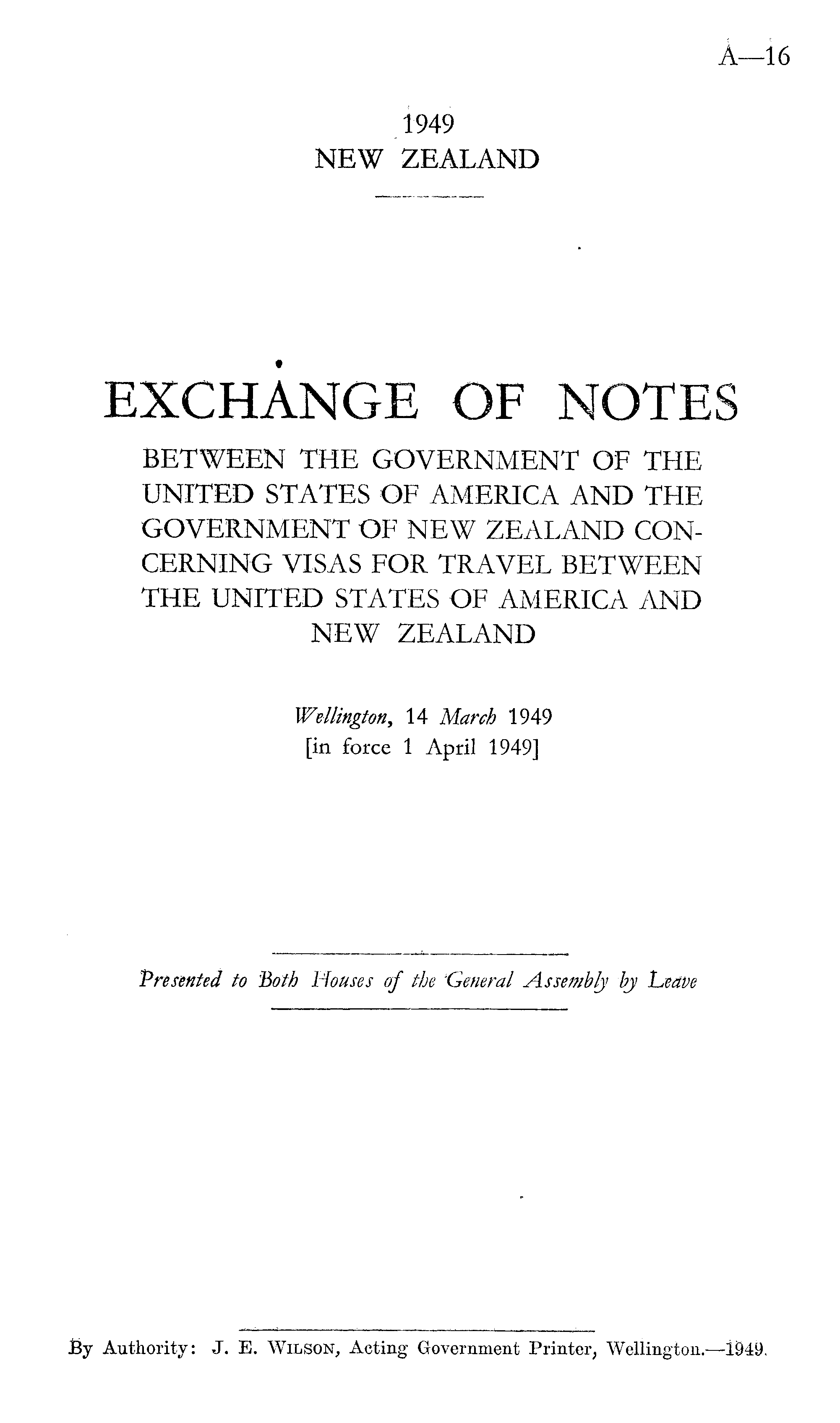 Wellington, 14 March 1949 [in force 1 April 1949]