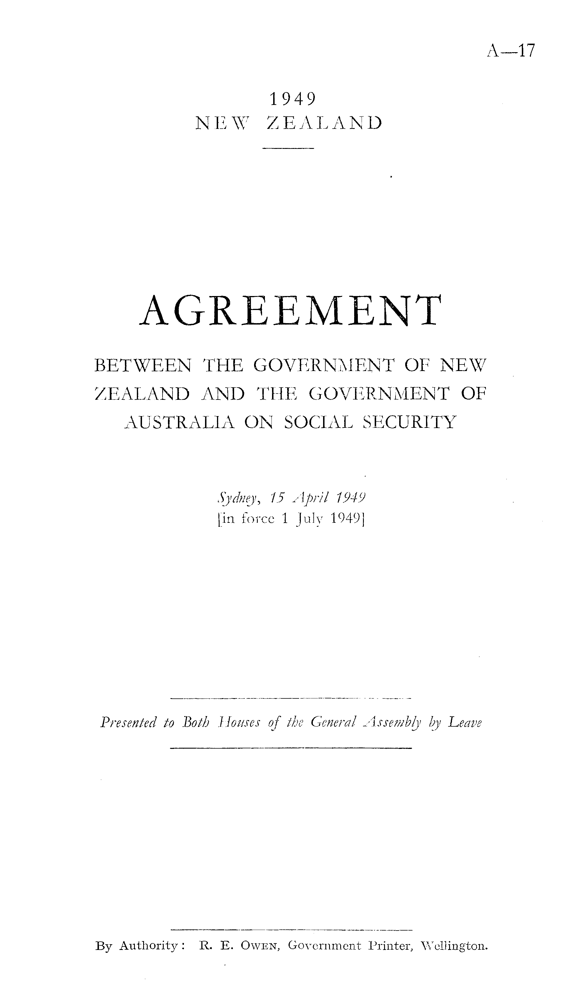 Sydney, 15 April 1949 [in force 1 July 1949]