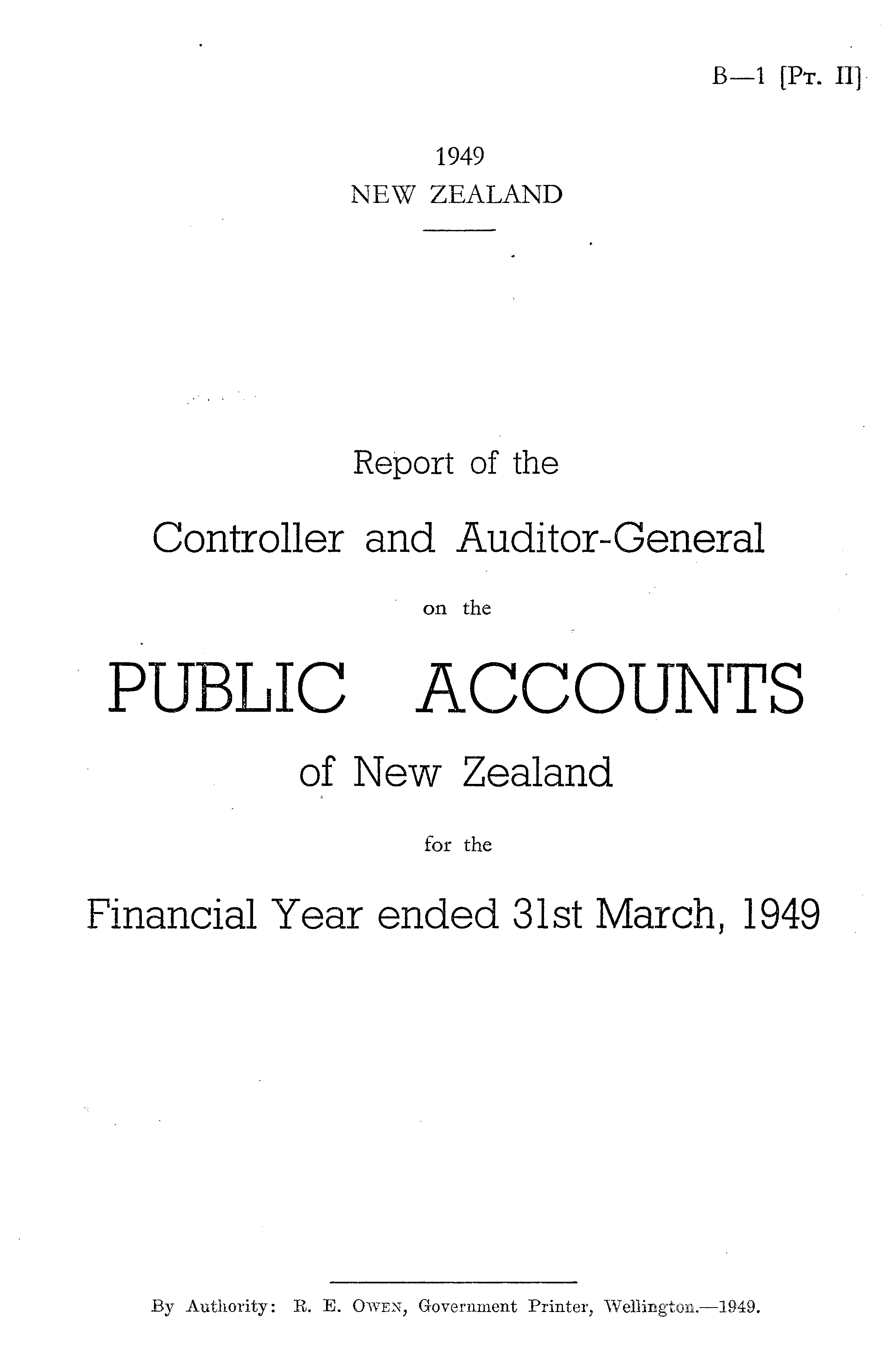 Report of the Controller and Auditor-General on the PUBLIC ACCOUNTS of New Zealand for the Financial Year ended 31st March, 1949