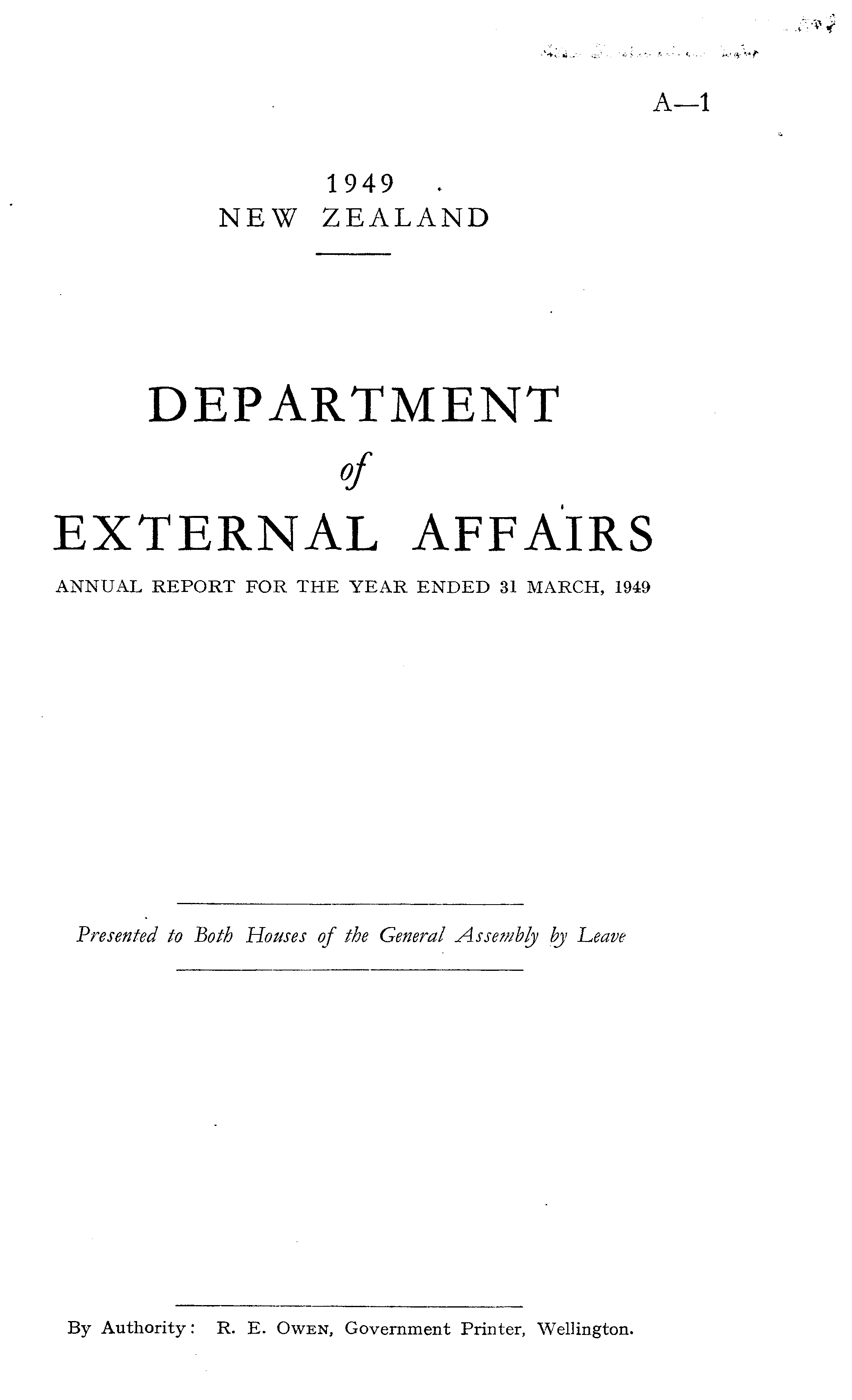 DEPARTMENT of EXTERNAL AFFAIRS ANNUAL REPORT FOR THE YEAR ENDED 31 MARCH, 1949