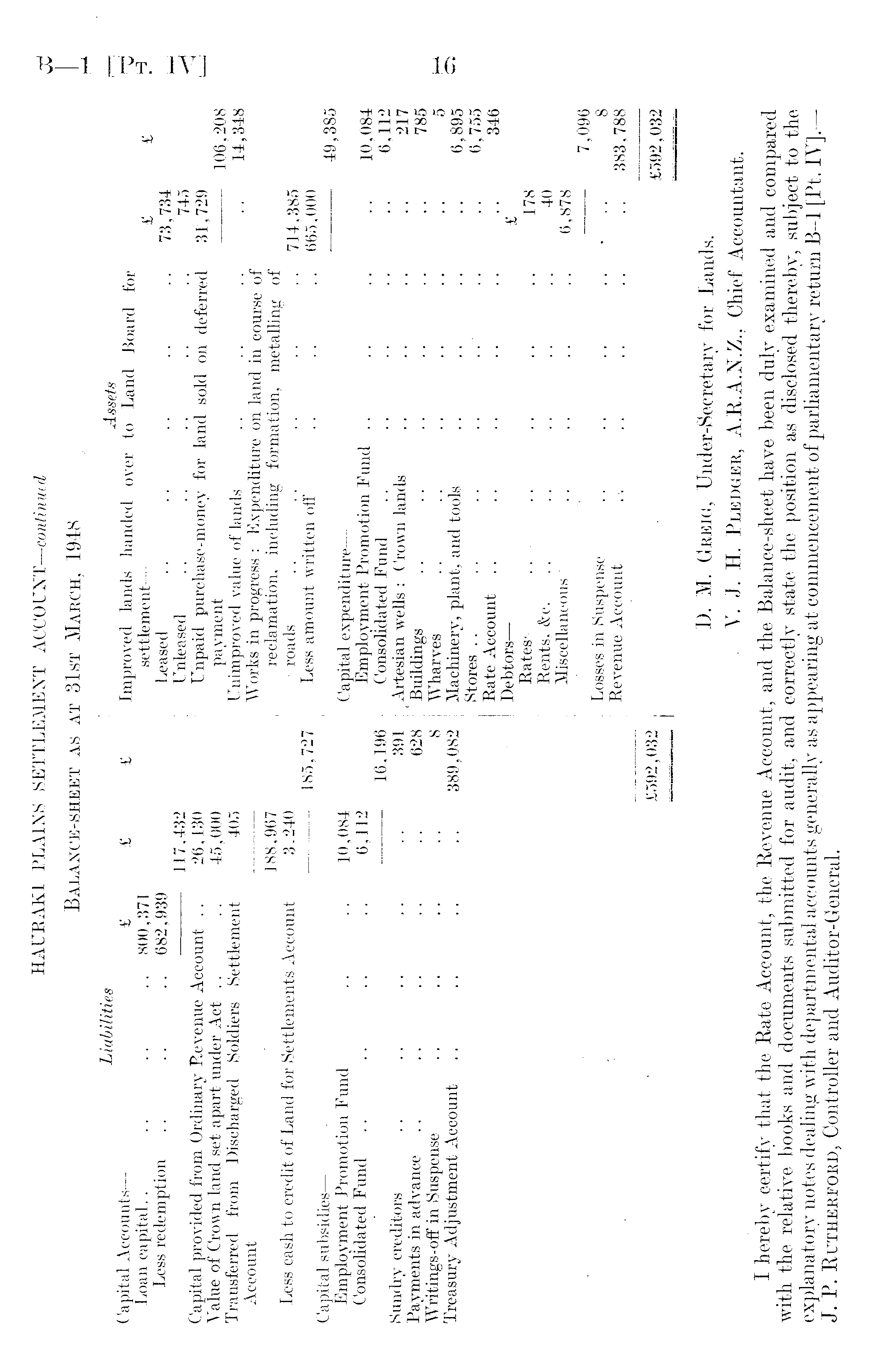 HAURAKI PLAINS SETTLEMENT ACCOUNT— continued Balance-sheet as at 31st March, 1948 Liabilities | Assets Capital Accounts— £ £ £ j Improved lands handed over to Land Board for Loan capital, . .. .. .. 800,371 settlement— £ £ Less redemption .. .. .. 682,939 Leased .. .. .. .. .. 73,734 117,432 Unleased .. .. .. . . '745 Capital provided from Ordinary Revenue Account .. 26,130 Unpaid purchase-money for land sold on deferred 31,729 Value of Crown land set apart under Act .. .. 45,000 payment 1_ 106 208 Transferred from Discharged Soldiers Settlement 405 Unimproved value of lands .. .. .. ... 14^348 Account Works in progress : Expenditure on land in course of 188,967 reclamation, including formation, metalling of Less cash to credit of Land for Settlements Account 3,240 roads .. .. .. .. 714 385 185,727 Less amount written oft' .. .. .. 665,000 Capital subsidies— • • 49 ggg Employment Promotion Fund .. .. 10,084 Capital expenditure— Consolidated Fund .. .. .. .. 6,112 Employment Promotion Fund .. ... .. .. 10,084 16,196 Consolidated Fund .. .. .. .. .. 6,112 Sundry creditors .. ... .. .. .. 391 Artesian wells : Crown lands .. .. .. .. '217 Payments in advance .. ..... . . . 628 ' Buildings ...... . . . . '' 785 Writings-off in Suspense .. . . . . ~ 8 Wharves . , . . . . .. . , , [ g Treasury Adjustment Account .. .. .. .. 389,082 Machinery, plant, and tools .. .! . 1 !! 6,895 Stores . . .. . . . . ..• . . .. 6^755 Rate Account . . .. . . . . , . .. 346 Debtors— £ Rates- ... .. .. .. .. 178 Rents, &c. . . .. .. .. .. 40 Miscellaneous" .. .. .. .. .6,878 . ' 7,096 Losses in Suspense .. .. .. .. * .. 8 Revenue Account , .. .. .. .. 383, 788 £592,032 . £592,032 D. M. Greig, Under-Secretary for Lands. V. J. H. Pledger, A.R.A.N.Z.. Chief Accountant. I hereby certify that the Rate Account, the Revenue Account, and the Balance-sheet have been duly examined and compared with the relative books and documents submitted for audit, and correctly state the position as disclosed thereby, subject to the explanatory notes dealing with departmental accounts generally as appearing at commencement of parliamentary return B-l [Pt. IV]. J. P. Rutherford, Controller and Auditor-General.