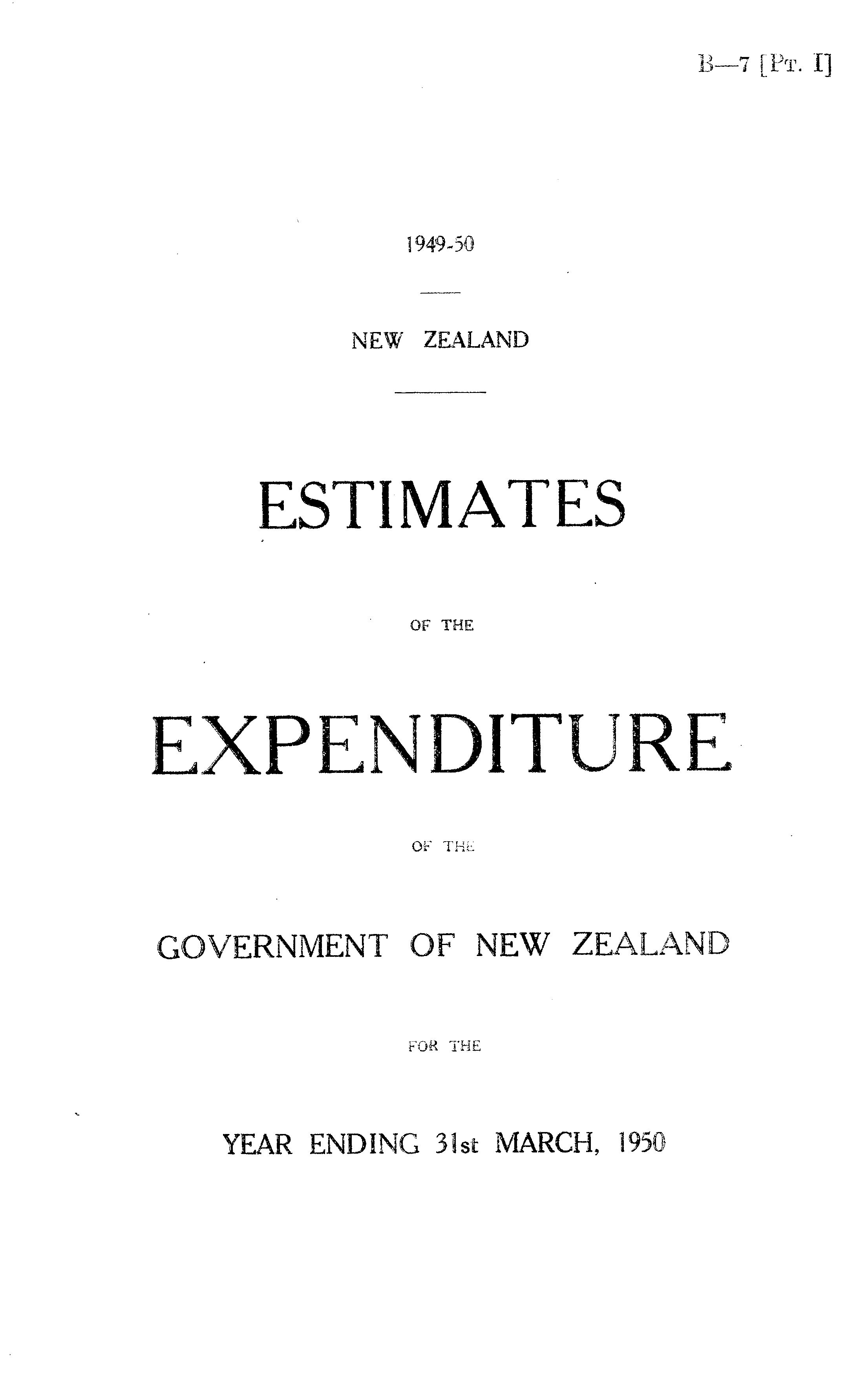 ESTIMATES OF THE EXPENDITURE OF THE GOVERNMENT OF NEW ZEALAND FOR THE YEAR ENDING 31st MARCH, 1950