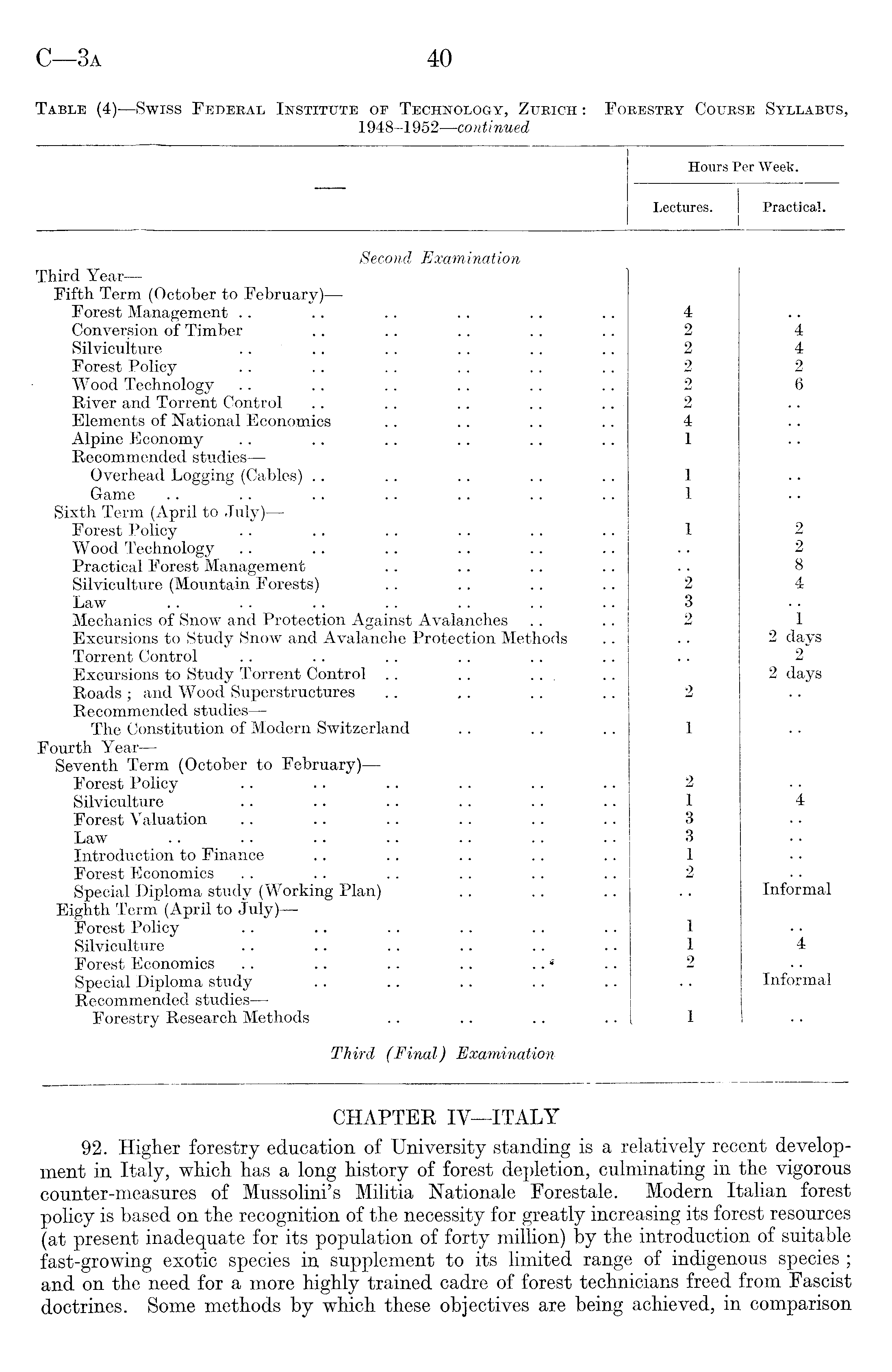 Table (4) —Swiss Federal Institute of Technology, Zurich: Forestry Course Syllabus, 1948-1952 —continued