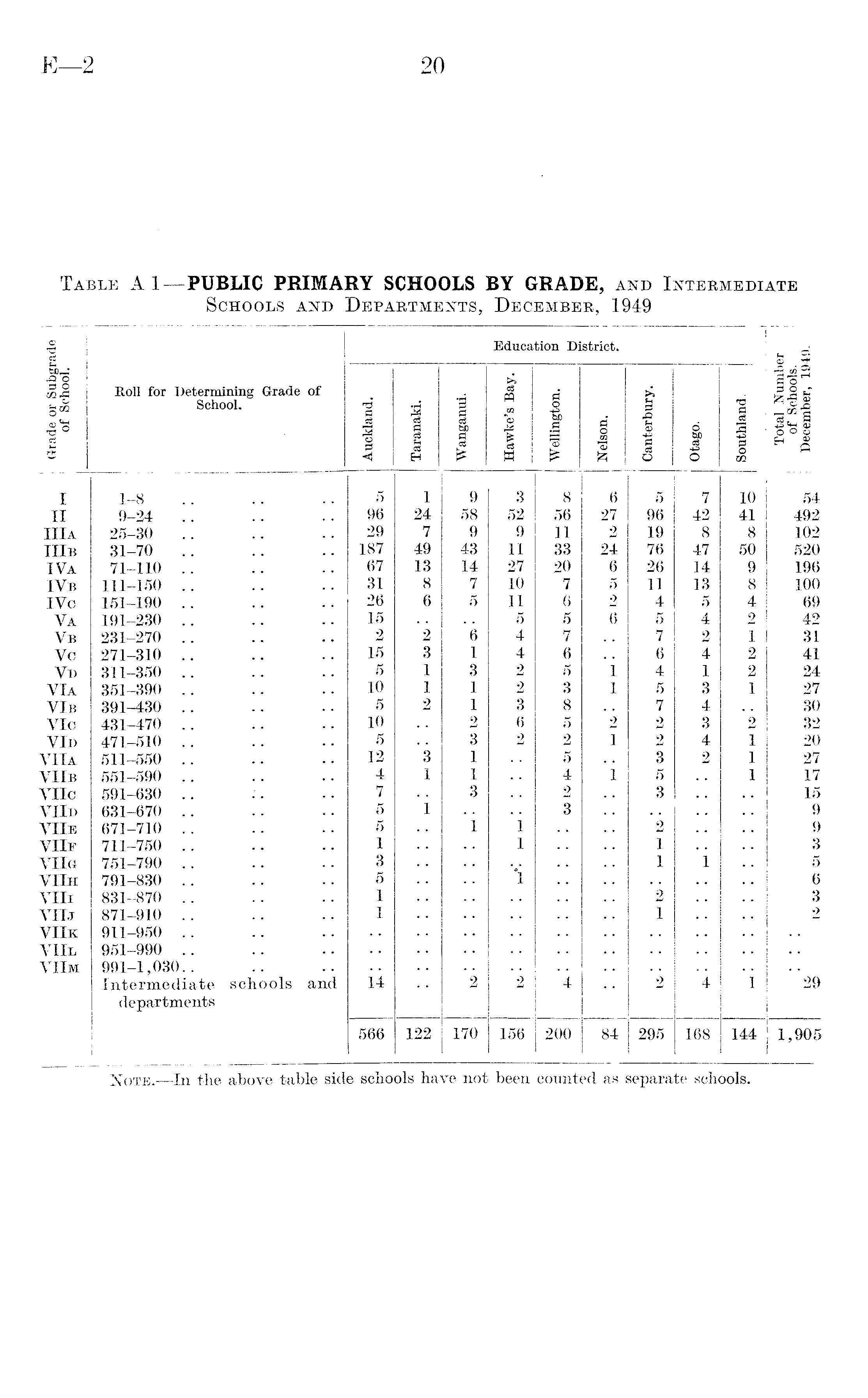 Table A1—PUBLIC PRIMARY SCHOOLS BY GRADE, and Intermediate Schools and Departments, December, 1949