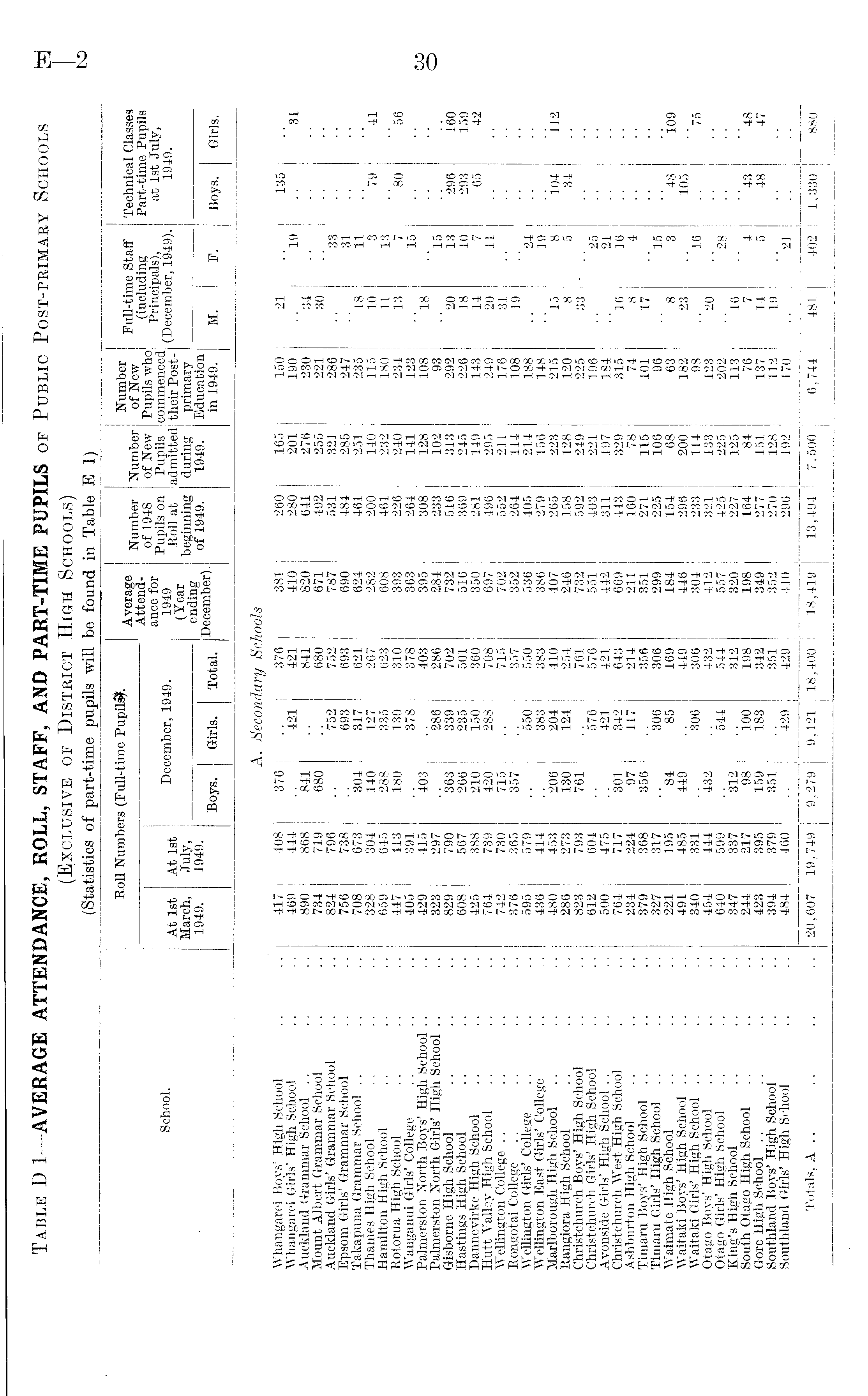 Table D1— AVERAGE ATTENDANCE, ROLL, STAFF, AND PART-TIME PUPILS of Public Post-primary Schools
