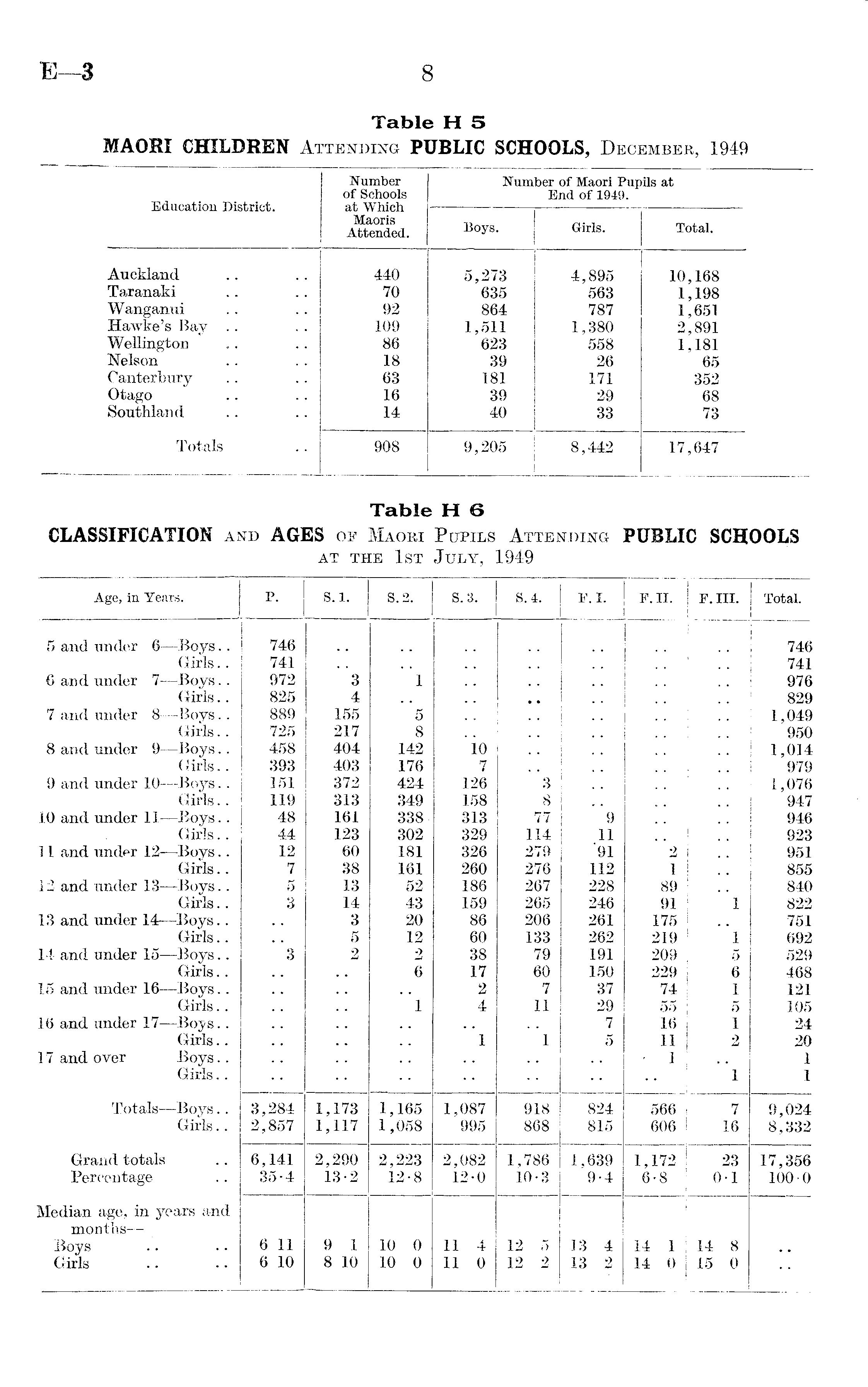 Table H5 MAORI CHILDREN Attending PUBLIC SCHOOLS, December, 1949