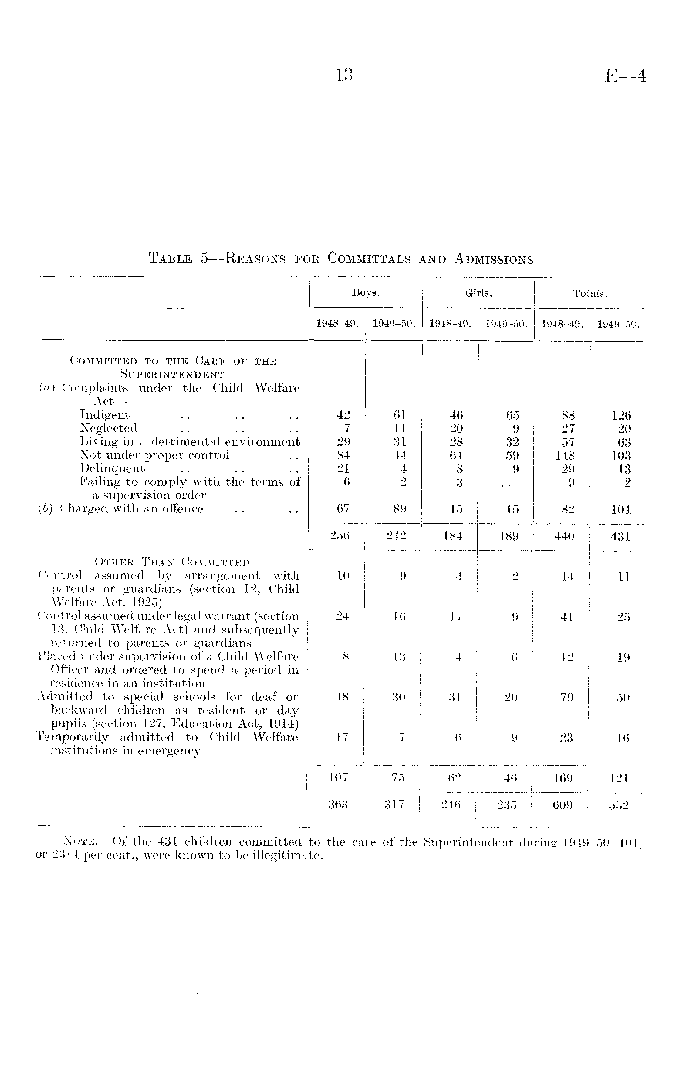 Note.—Of the 431 children committed to the care of the Superintendent during 1949-50, 101 r or 23-4 per cent., were known to be illegitimate.