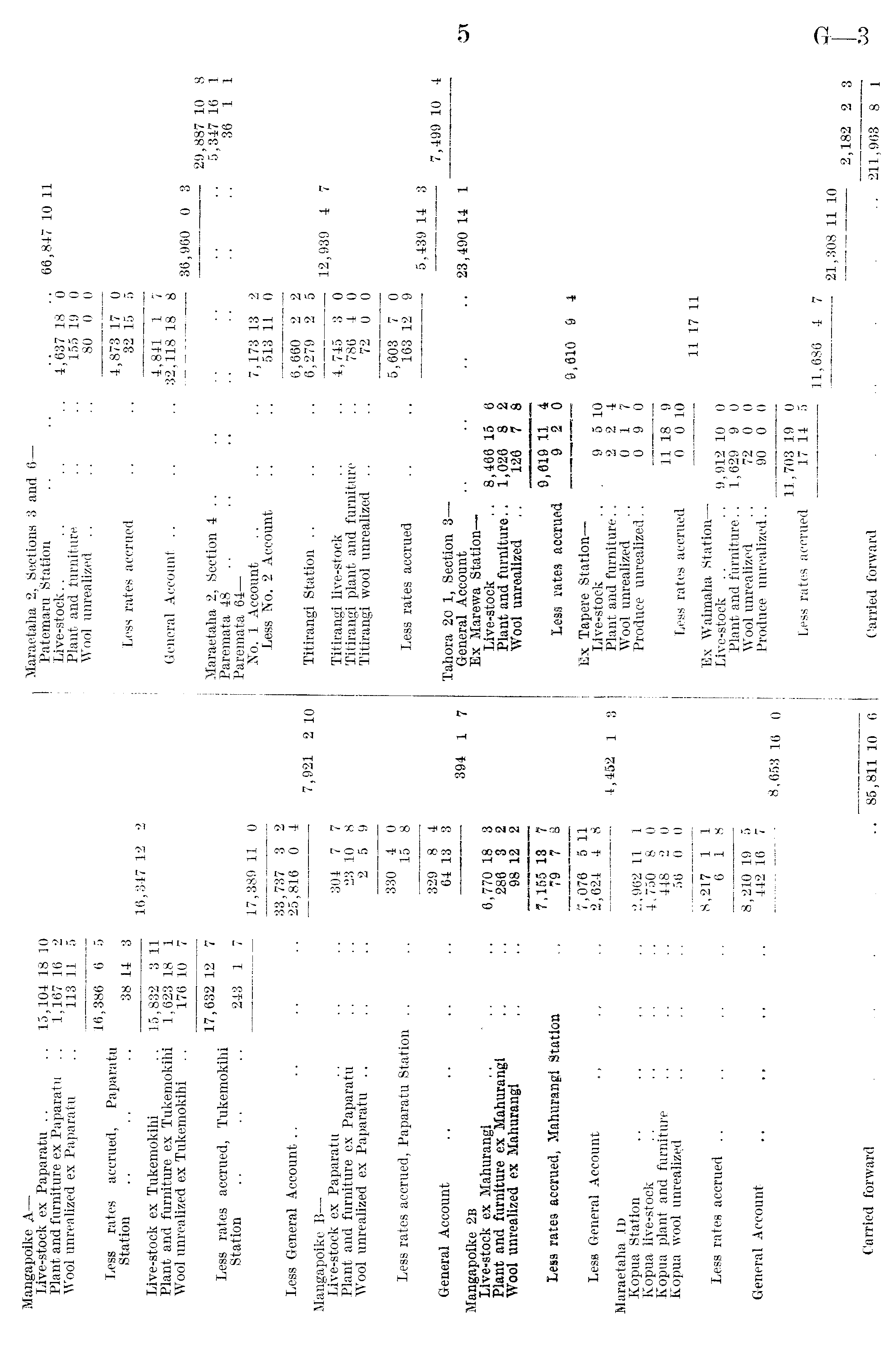 Mangapoike A— . Maraetaha 2, Sections 3 and 6—■ Live-stock ex Paparatu .. .. 15,104 18 10 Patemaru Station .. .. .. .. 66,847 10 11 Plant and furniture ex Paparatu 1,167 16 2 ! Live-stock 4 637 18 0 Wool unrealized ex Paparatu 113 11 5 | Plant and furniture .. .' 155 19 0 Wool unrealized .. . . .. 80 0 0 16,386 6 5 | Less rates accrued, Paparatu 4,873 17 0 Station ...... 38 14 3 Less rates accrued .. .. 32 15 5 16,347 12 2 Live-stock ex Tukemokihi .. 15,832 3 11 4 841 1 7 Plant and furniture ex Tukemokihi 1,623 18 1 General Account .. .. .. 32,'118 18 8 Wool unrealized ex Tukemokihi 176 10 7 I 36,960 0 3 —— 29,887 10 8 17,632 12 7 Maraetaha 2, Section 4 .. .. .. .. .. .. 5,347 16 1 Less rates accrued, Tukemokihi Paremata 48 .. .. .. .. .. .. 36 1 1 Station .. .. .. 243 1 7 Paremata 64 17,389 11 0 No. 1 Account .. .. .. 7,173 13 2 — Less TSTo. 2 Account .. .. 513 11 0 33,737 3 2 Less General Account.. .. .. .. 25,816 0 4 6 660 22 „ „ 7,921 2 10 Titirangi Station .. .. .. 2 5 Mangapoike B— 22 939 4 7 Live-stock ex Paparatu .. .. .. 304 7 7 Titirangi live-stock .. .. 4,745 3 0 Plant and furniture ex Paparatu .. .. 23 10 8 Titirangi plant and furniture .. 786 4 0 Wool unrealized ex Paparatu .. .. .. 2 5 9 Titirangi wool unrealized .. .. 72 0 0 330 4 0 5,603 7 0 Less rates accrued, Paparatu Station .. .. 15 8 Less rates accrued .. .. 163 12 9 5,439 14 3 329 8 4 7 499 4 General Account .. .. .. .. 64 13 3 Tahora 20 1, Section 3 - „ 394 1 7 General Account .. .. .. .. 23,490 14 1 Mangapoike 2b Ex Marewa Station—• Live-stock ex Mahurangi .. " .. .. 6,770 18 3 Live-stock .. 8,466 15 6 Plant and furniture ex Mahurangi .. .. 280 3 2 Plant and furniture.. 1,026 8 2 Wool unrealized ex Mahurangi ~ .. 98 12 2 Wool unrealized .. 120 7 8 7,155 18 7 9,019 11 4 Less rates accrued, Mahurangi Station ~ 79 7 8 Less rates accrued 9 2 0 9)01O 9 4 _ , , 7,076 5 11 Ex Tapere Station— Less General Account 2,024 4 8 Live-stock ... 9 5 10 lr —— 4,462 1 3 Plant and furniture.. 22 4 Maraetaha Id Wool unrealized .. 0 17 Kopua Station ~ 2,962 11 1 Produce unrealized.. 0 9 0 Kopua live-stock .. .. .. 4,750 8 0 . Kopua plant and furniture .. .. ~ 448 2 0 11 18 9 Kopua wool unrealized .. .. .. 56 0 0 Less rates accrued 0 0 10 ll 17 11 , r 8,217 11 Ex Waimaha Station— Less rates accrued .. ~ .. 6 18 Live-stock .. .. 9,912 10 0 ——■ Plant and furniture.. 1,629 9 0 „ , . 8,210 19 5 Wool unrealized .. 72 0 0 General Account ~ .. 442 16 7 Produce unrealized.. 90 0 0 — 8,053 16 0 11,703 19 0 Less rates accrued 17 14 5 11,686 4 7 21,308 11 10 2,182 2 3 Carried forward .. . 85,811 10 6 Carried forward .. .. 211,963 8 1