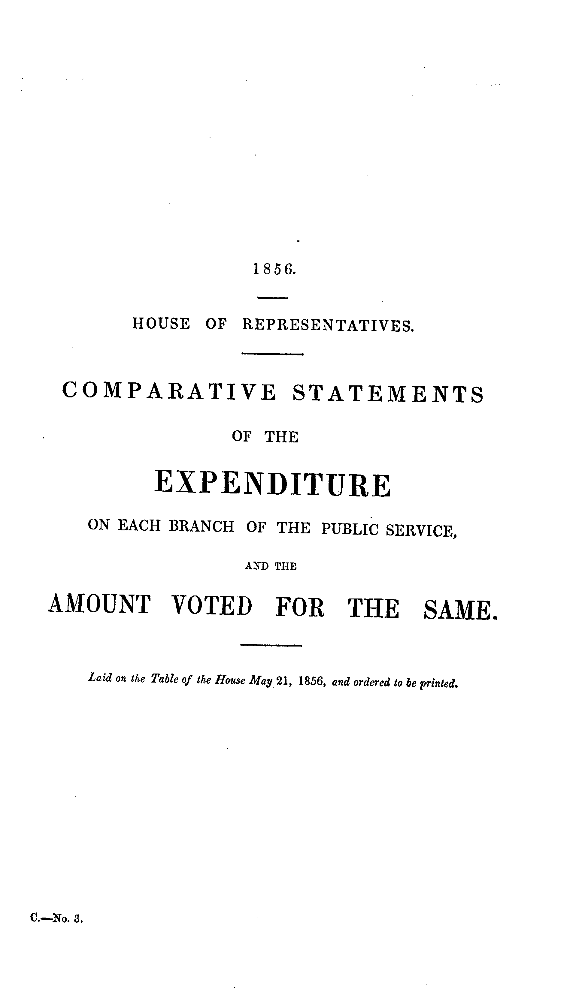 COMPARATIVE STATEMENTS OF THE EXPENDITURE ON EACH BRANCH OF THE PUBLIC SERVICE, AND THE AMOUNT VOTED FOR THE SAME.